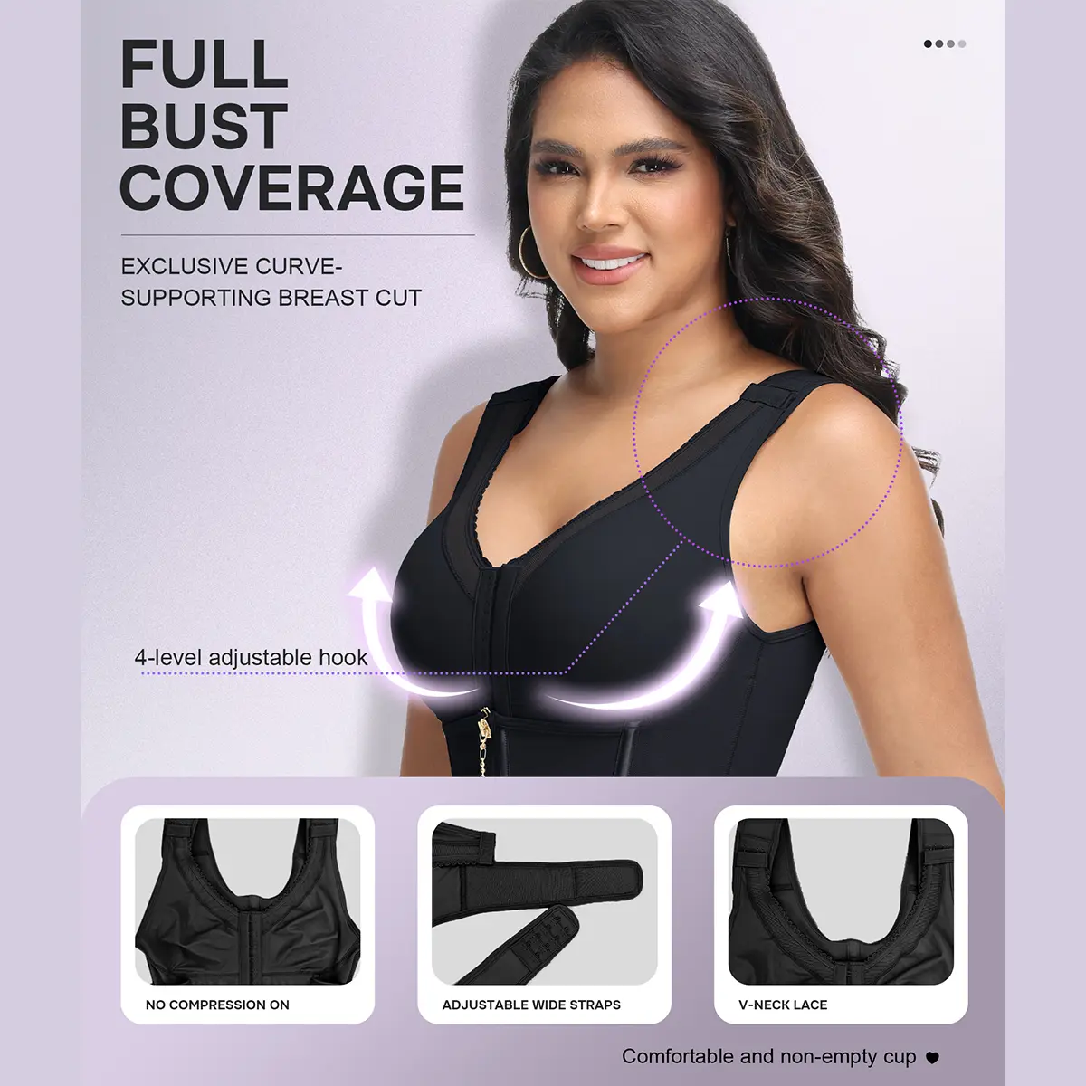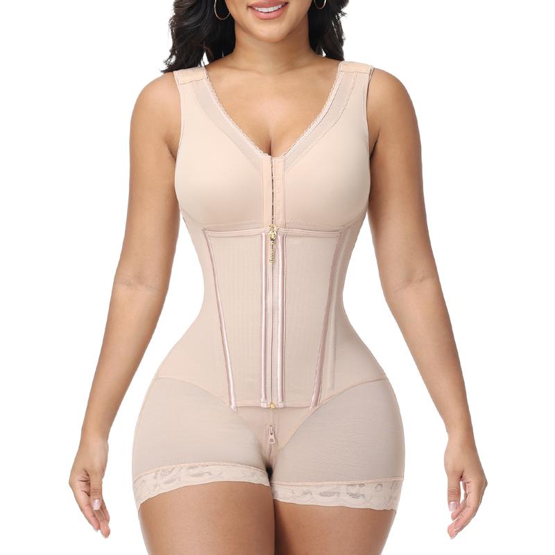 Our tummy control shapewear for women features triple-row hook-and-eye closures for flexible adjustment and a smooth zipper for extra compression. Combined with nine steel bones, it effectively flattens the abdomen, sculpts the waist, and creates a sleek S-curve.