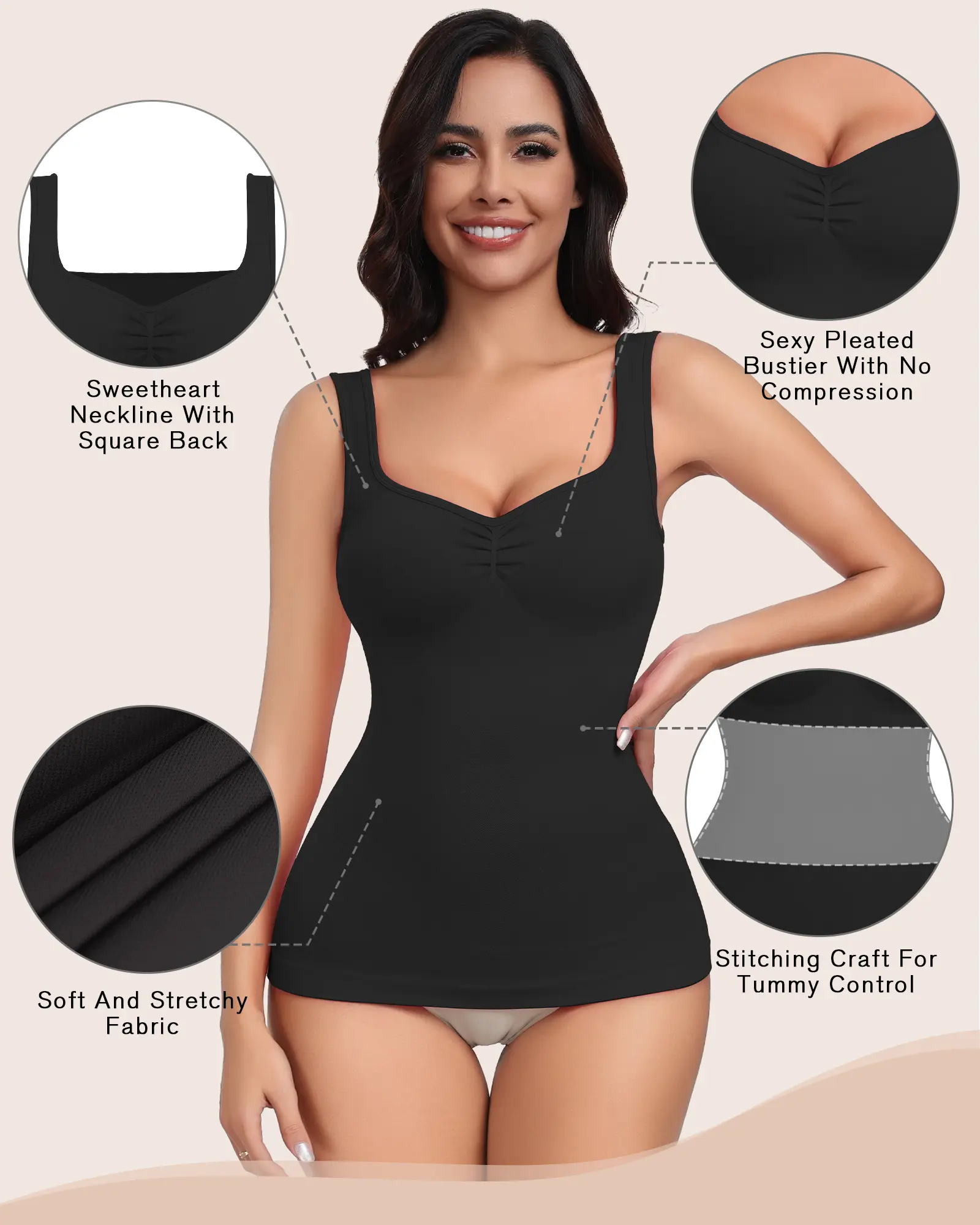 ·Beautiful Sweetheart Neck - With a sweetheart neckline and pleated ruched curve bustier shape, the shapewear cami is perfect for pairing with any bottoms, layering or wearing on its own and gives an cute look for you.