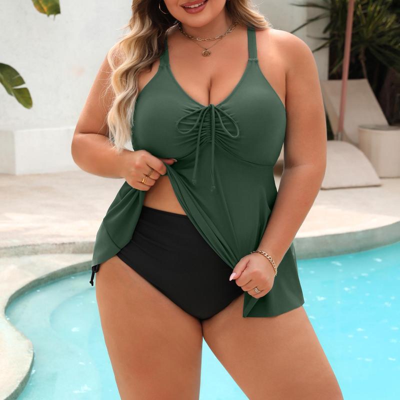 ·Flattering & Supportive -- Tankini swimsuits for women blend style with practicality, a flowy swim dress top features ruched design, and adjustable chest strings and straps provide a personalized fit, built-in bra pads offer comfortable support
