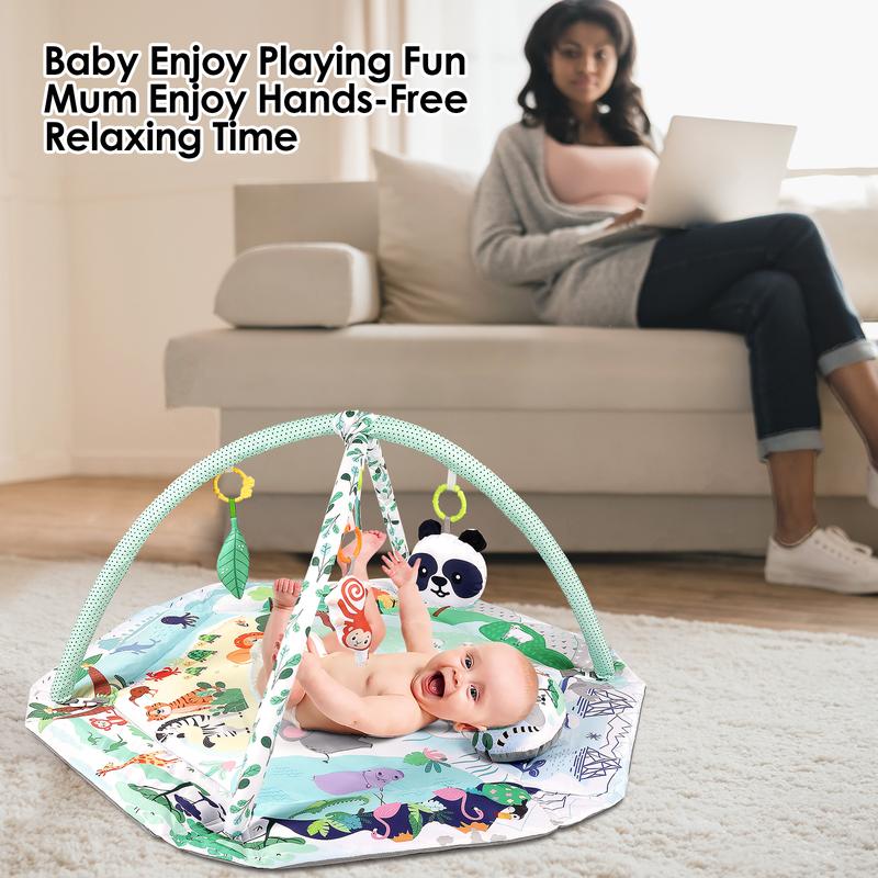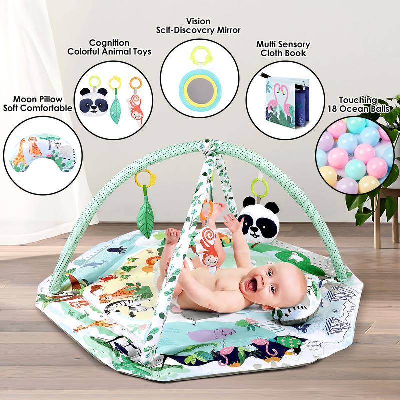 A cozy spot for your baby to relax and bond. This mat promotes relaxation and bonding, making every moment special. Perfect for newborns, it encourages a comfortable environment for your little one. The mat offers a versatile space for activities, encouraging exploration and interaction. It includes 6 toys that stimulate sensory development, helping babies learn through play. The mat is ideal for newborns, fostering a playful and engaging environment.