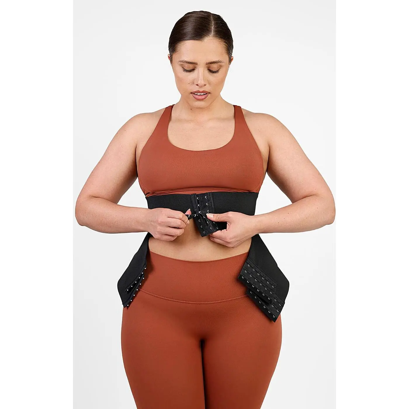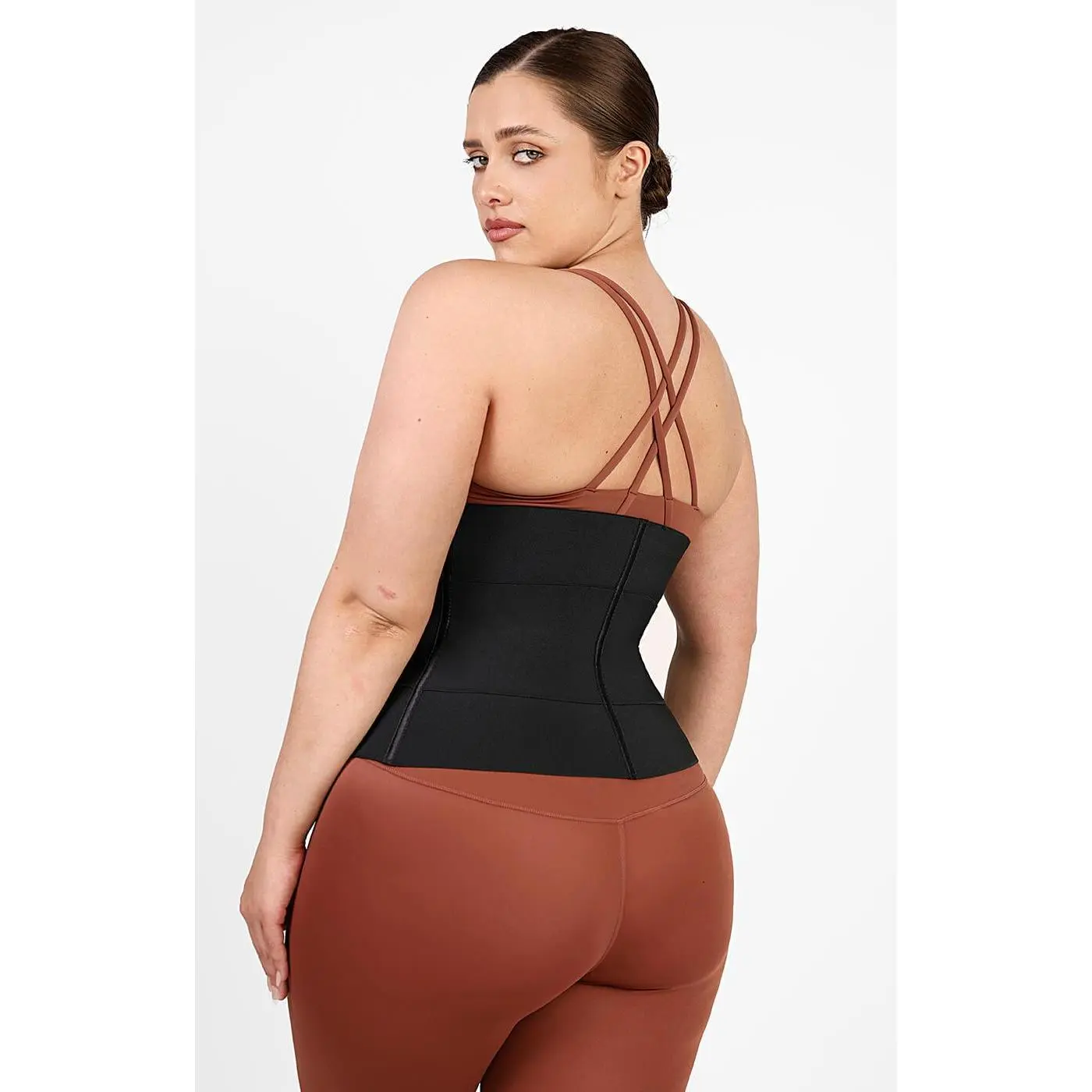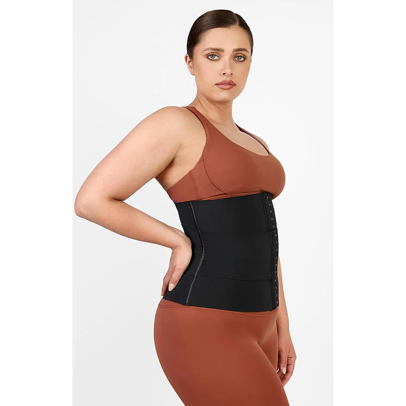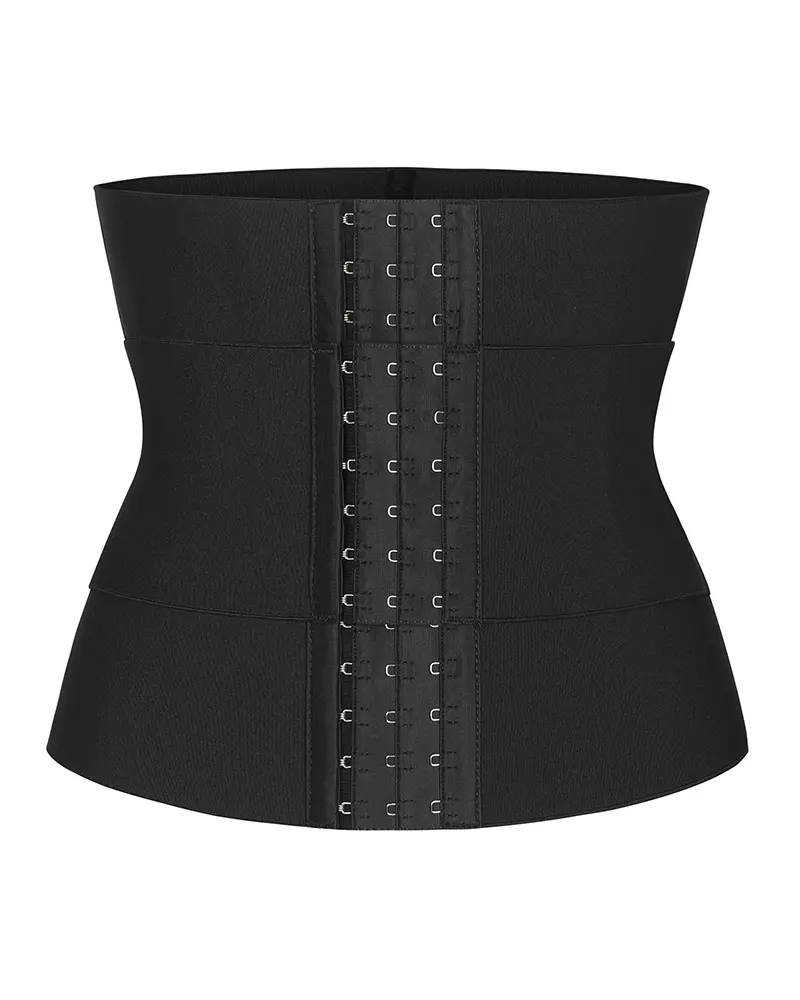 It features: • Latex and polyester composition. • Three-level hook and eye clasp. • Three adjustable compression straps. • Increase muscle heat and get sculpted. • Inclusive size and mutiple color.  • Flex boning provides back support for any activity.