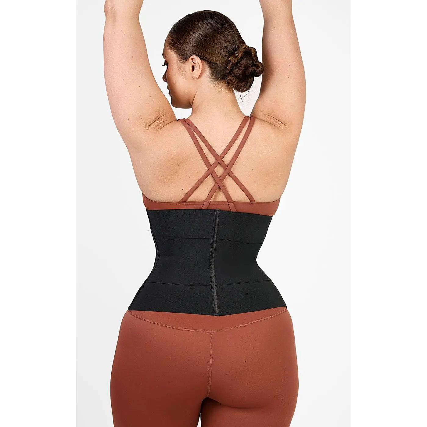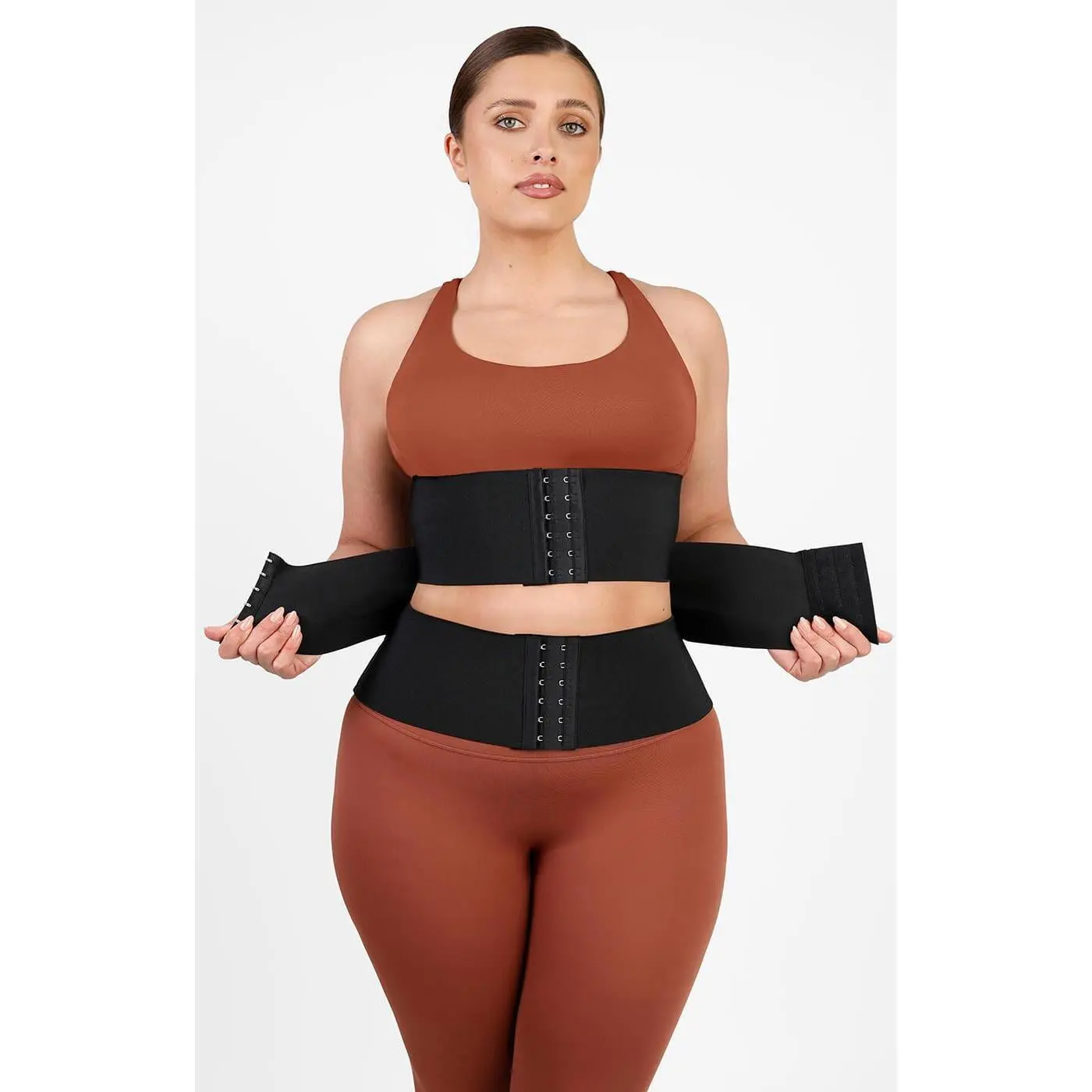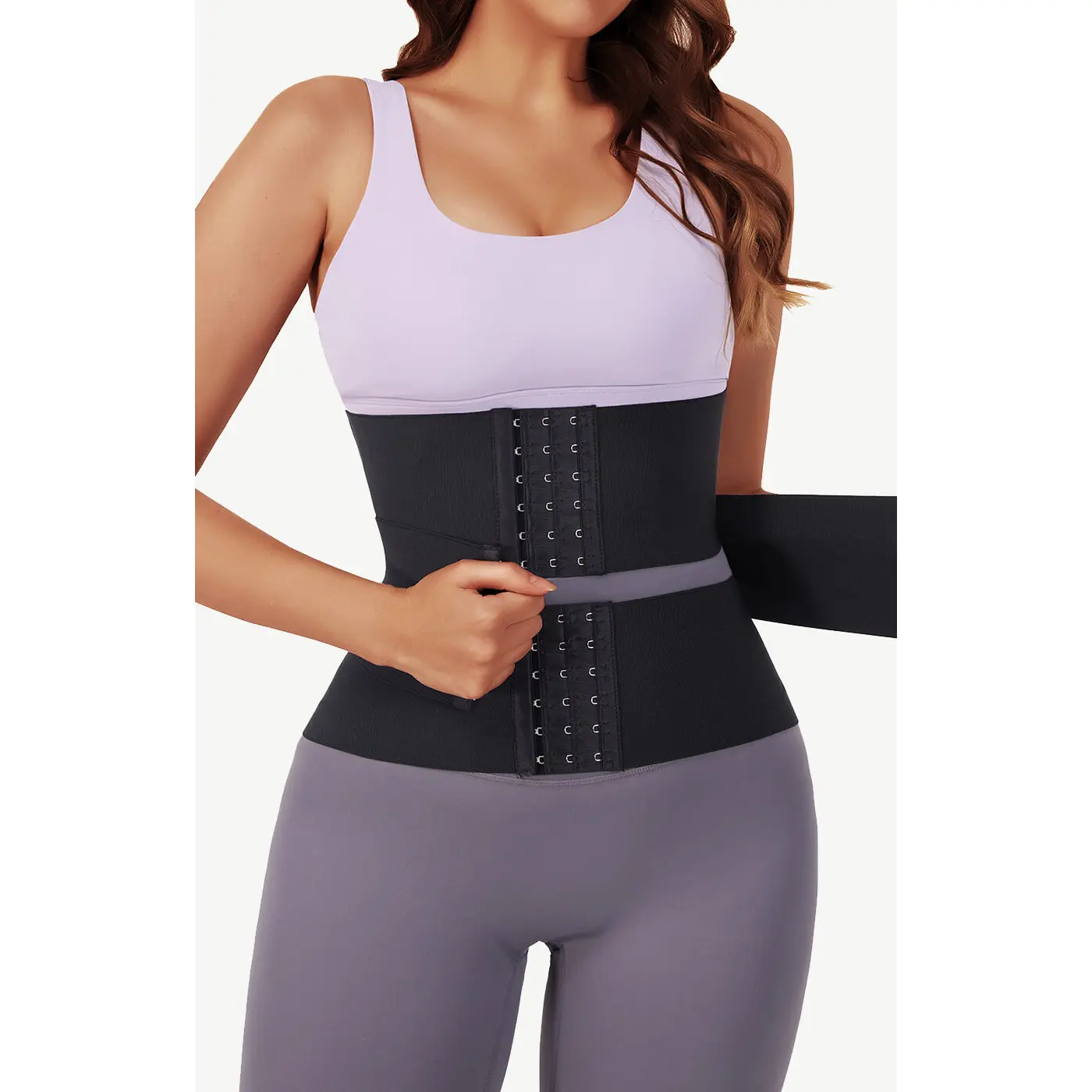 It features: • Latex and polyester composition. • Three-level hook and eye clasp. • Three adjustable compression straps. • Increase muscle heat and get sculpted. • Inclusive size and mutiple color.  • Flex boning provides back support for any activity.