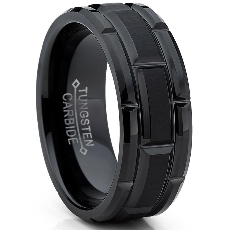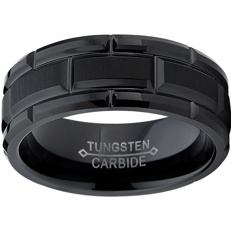 5. Tungsten Carbide Men's Black Brushed Grooved Wedding Band Engagement Ring, Comfort Fit 8mm