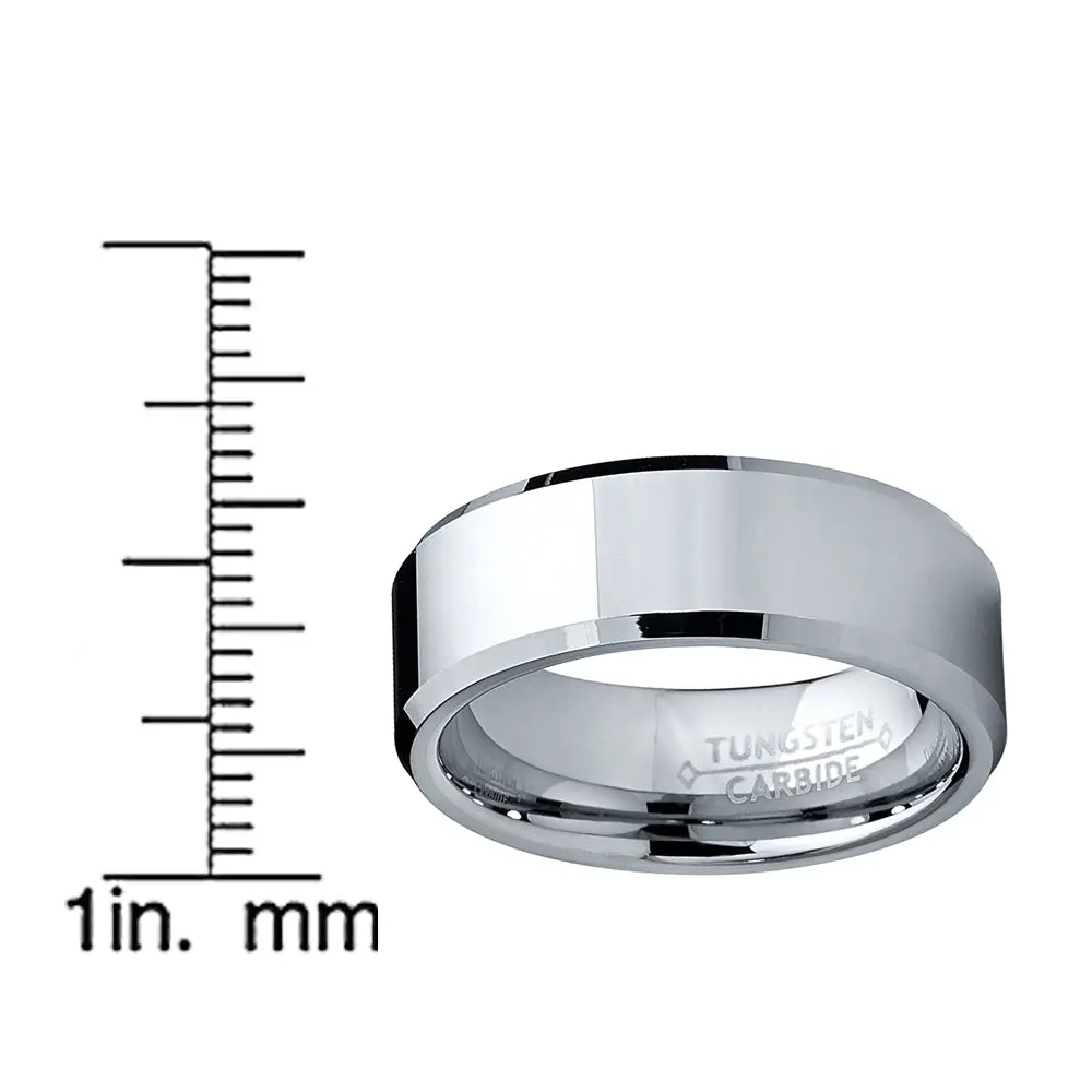 Men's High Polish Beveled Edge Tungsten Carbide Ring sizes 5 to 15