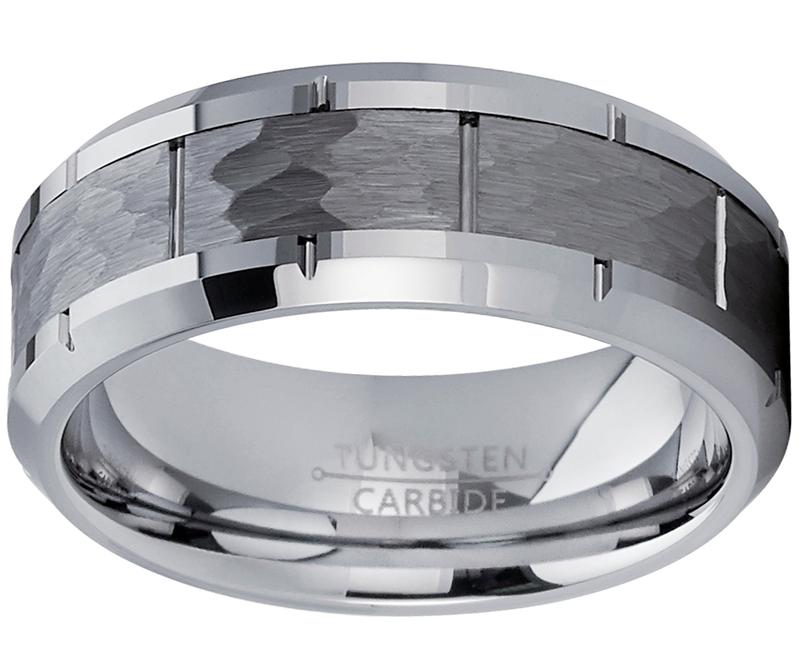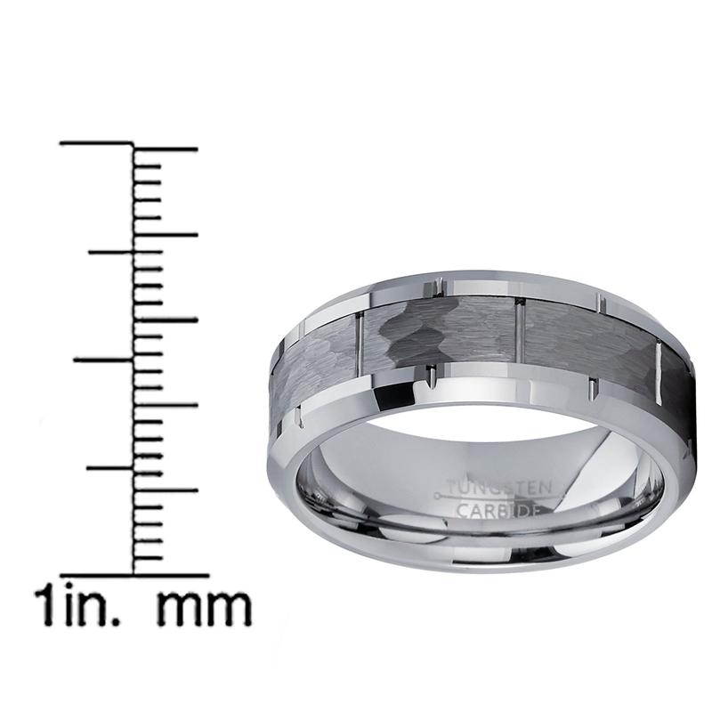 5. Men's Hammered Grooved Tungsten Carbide Wedding Band Ring, 8mm Comfort Fit