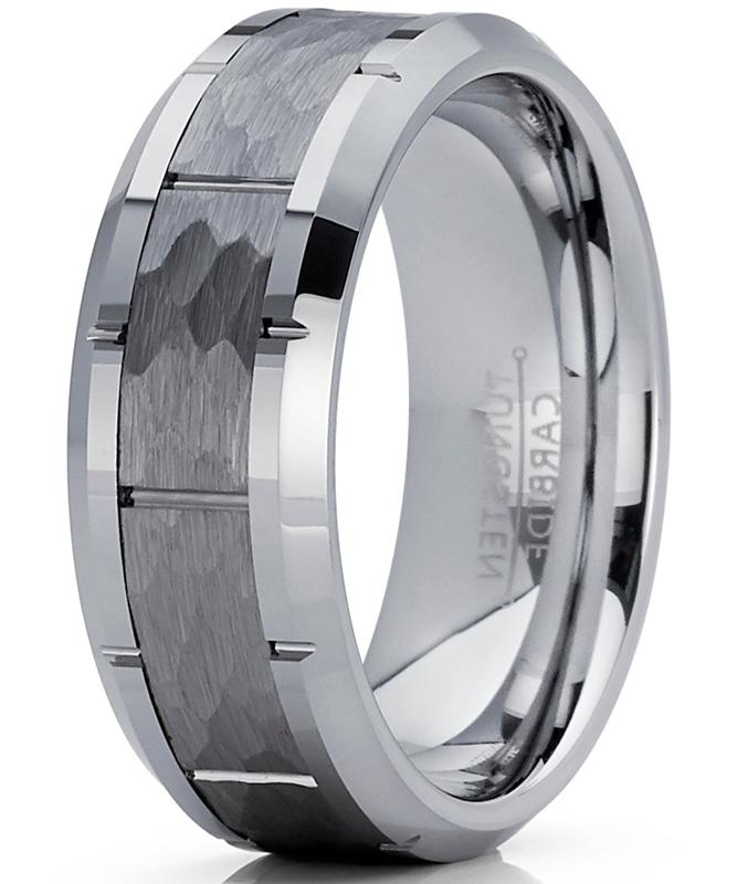 Men's Hammered Grooved Tungsten Carbide Wedding Band Ring, 8mm Comfort Fit