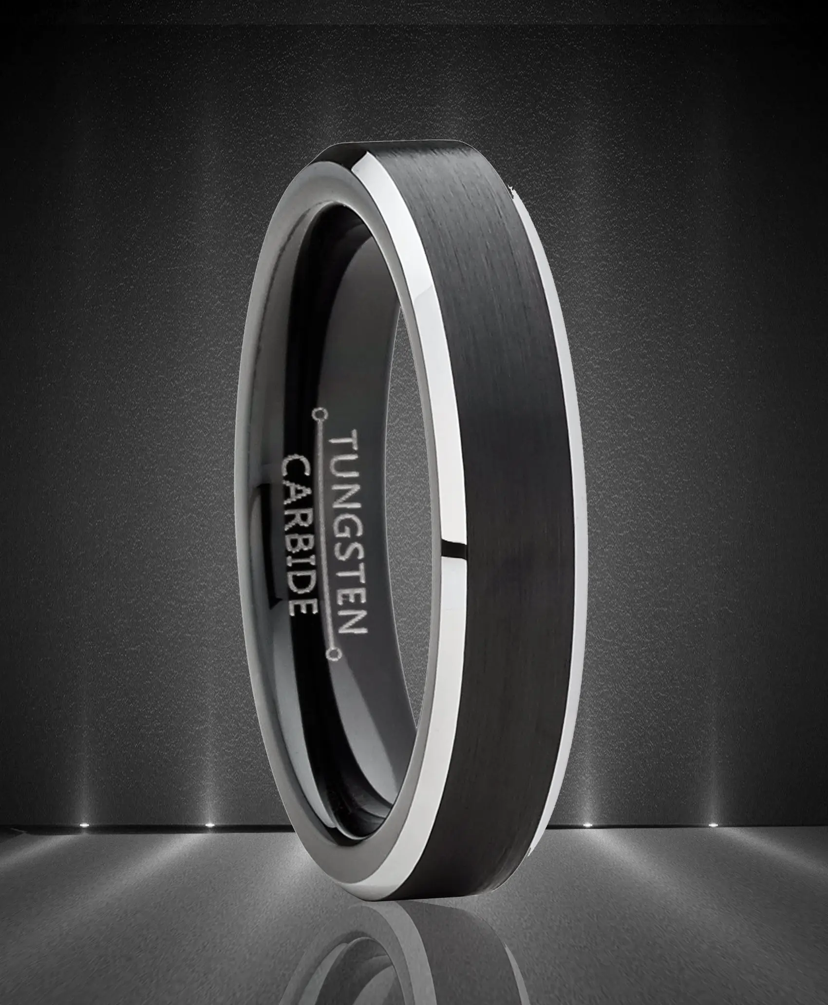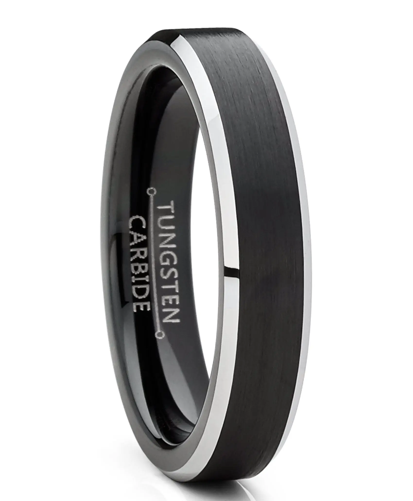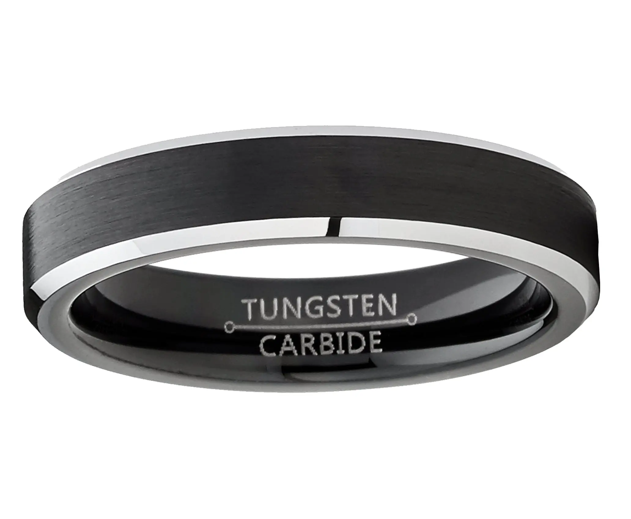 5. Men Women Wedding Black Tungsten Ring 4mm Matte Finish Beveled Polished Edge Comfort Fit