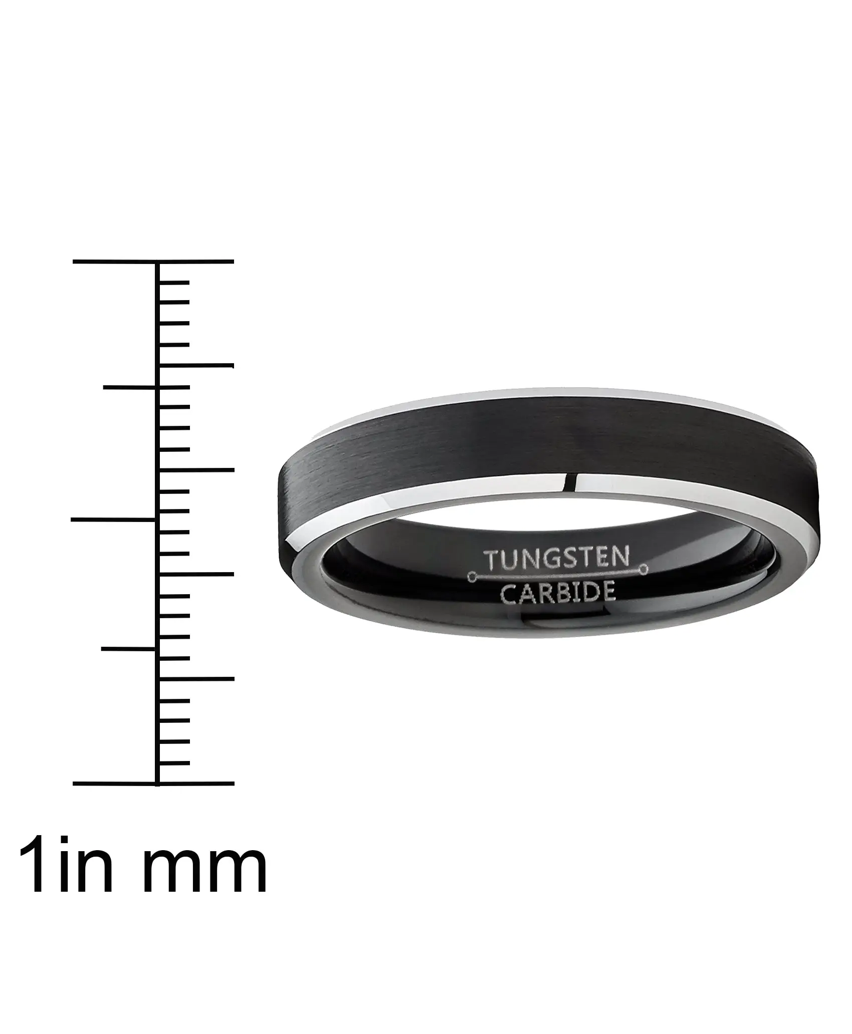 Men Women Wedding Black Tungsten Ring 4mm Matte Finish Beveled Polished Edge Comfort Fit