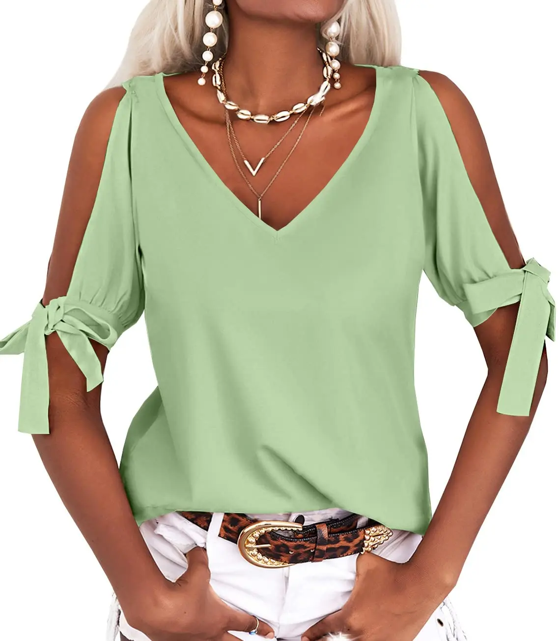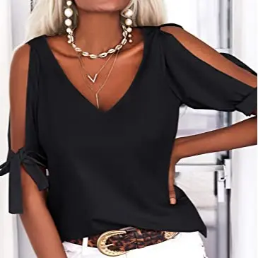 Elevate your wardrobe with the Veatzaer Women's Deep V-Neck Short Sleeve T-Shirt. This stylish blouse is perfect for a variety of occasions, whether you're heading out, at home, at work, or partying.