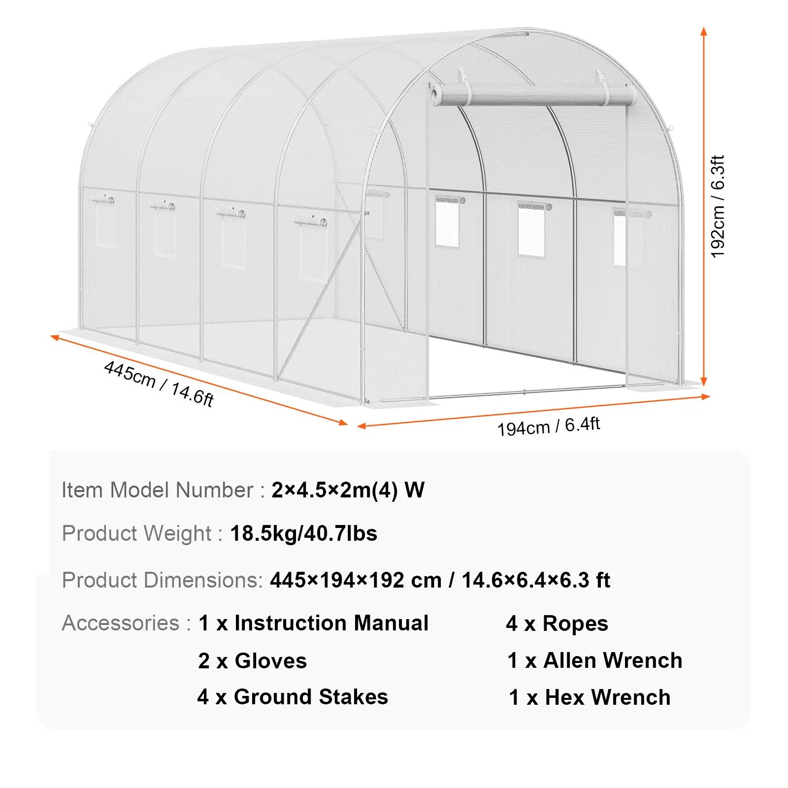 • Spacious Walk-In Design: With a spacious 14.60x6.36x6.30 ft area, this walk-in greenhouse tunnel is ideal for growing a variety of plants. You can easily access and maintain your plants, or set up multiple plant shelves to meet both home gardening and commercial planting needs.