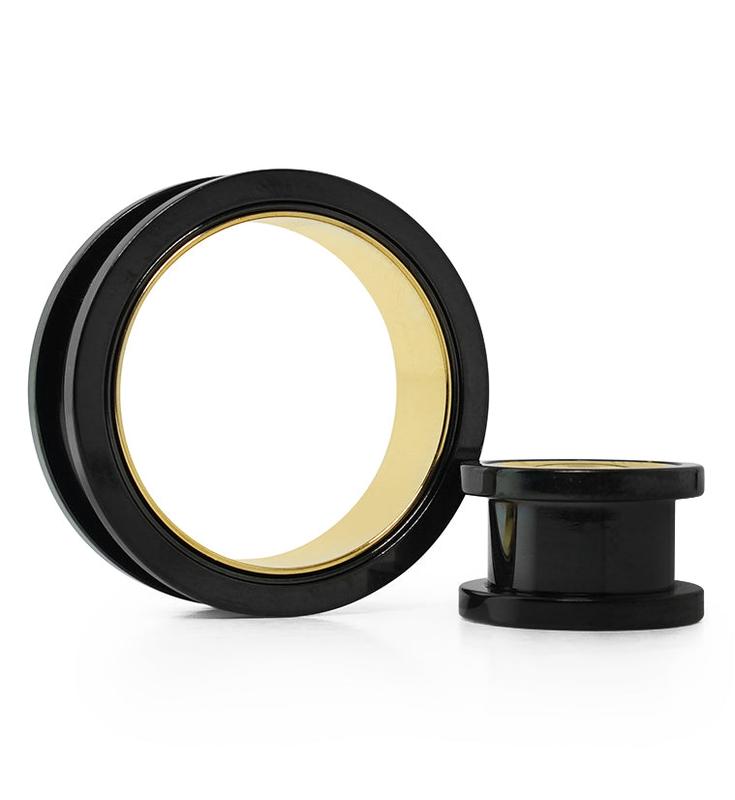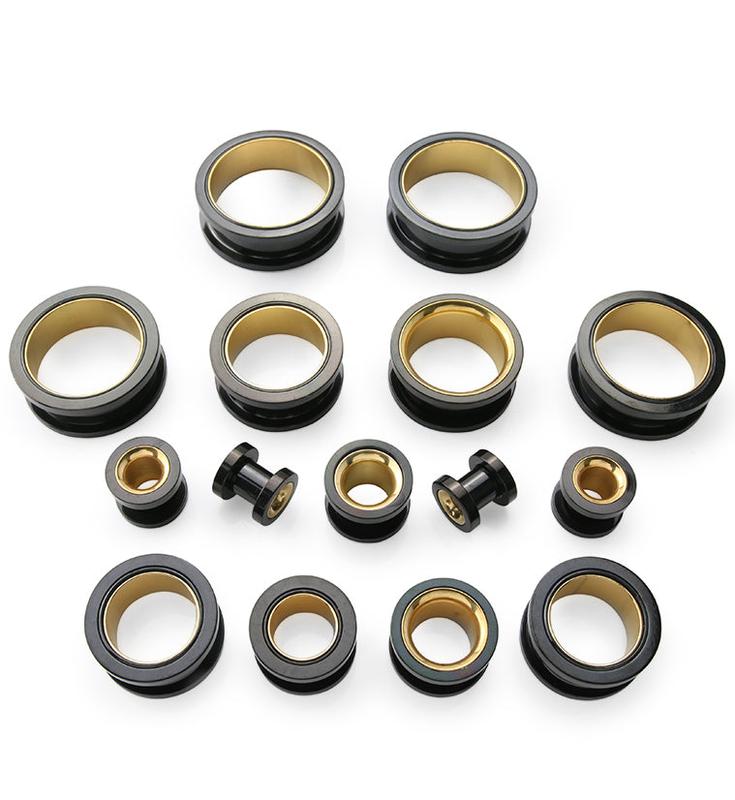 Black and Gold PVD Stainless Steel Screw Back Tunnels