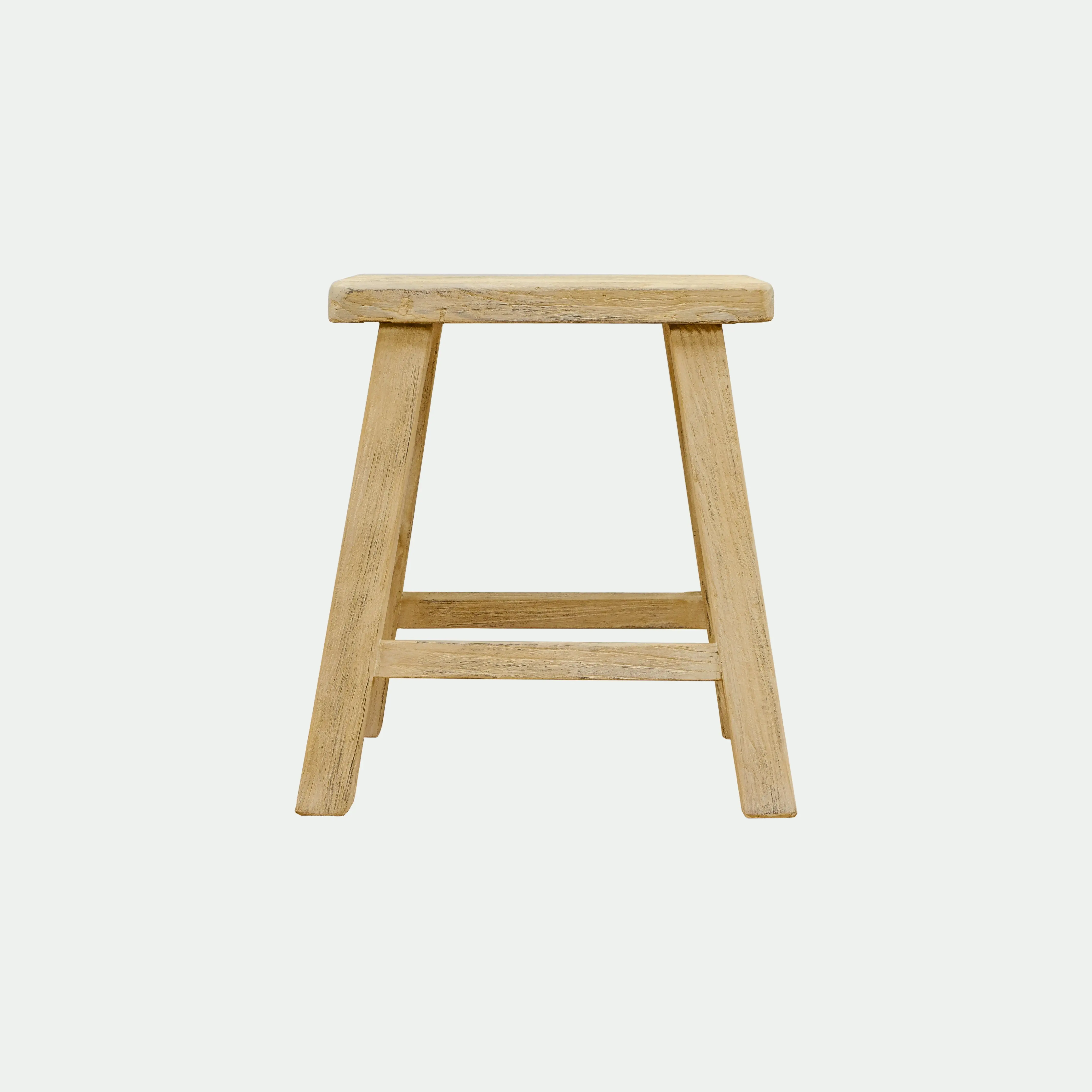 Handcrafted of unfinished solid elm timbers, the Tuomo Rectangular Stool celebrates natural beauty and essentialism. Aside from those born by nature, a top without embellishments rests upon four sturdy legs, the timeworn wood revealing its rustic character in one-of-a-kind nicks, knots, and authentic character.
