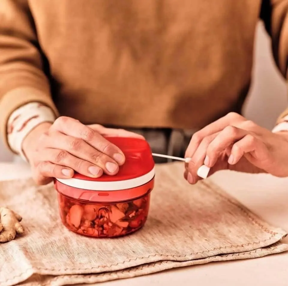 The Tupperware SuperSonic Chopper Mini is a compact kitchen tool for efficient food preparation. It's part of the Tupperware brand, known for kitchen accessories. Ideal for small, portable chopping tasks, it fits easily into any kitchen setup. Its mini size ensures easy storage and use without taking up much space.