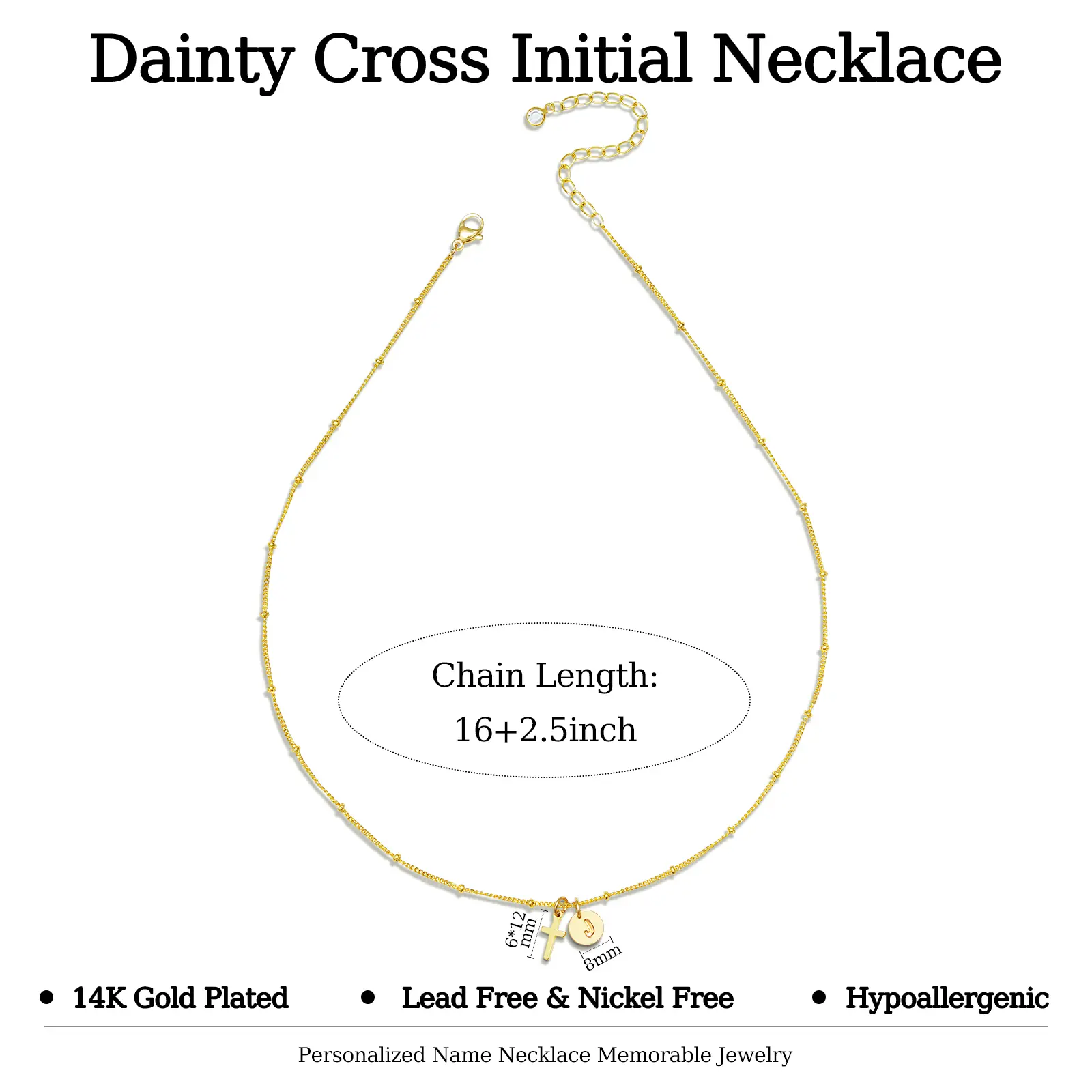 Made from high-quality 14K gold-plated brass, this cross initial necklace is nickel-free and lead-free, offering long-lasting shine with excellent resistance to tarnishing. Gentle on sensitive skin and comfortable for daily wear.