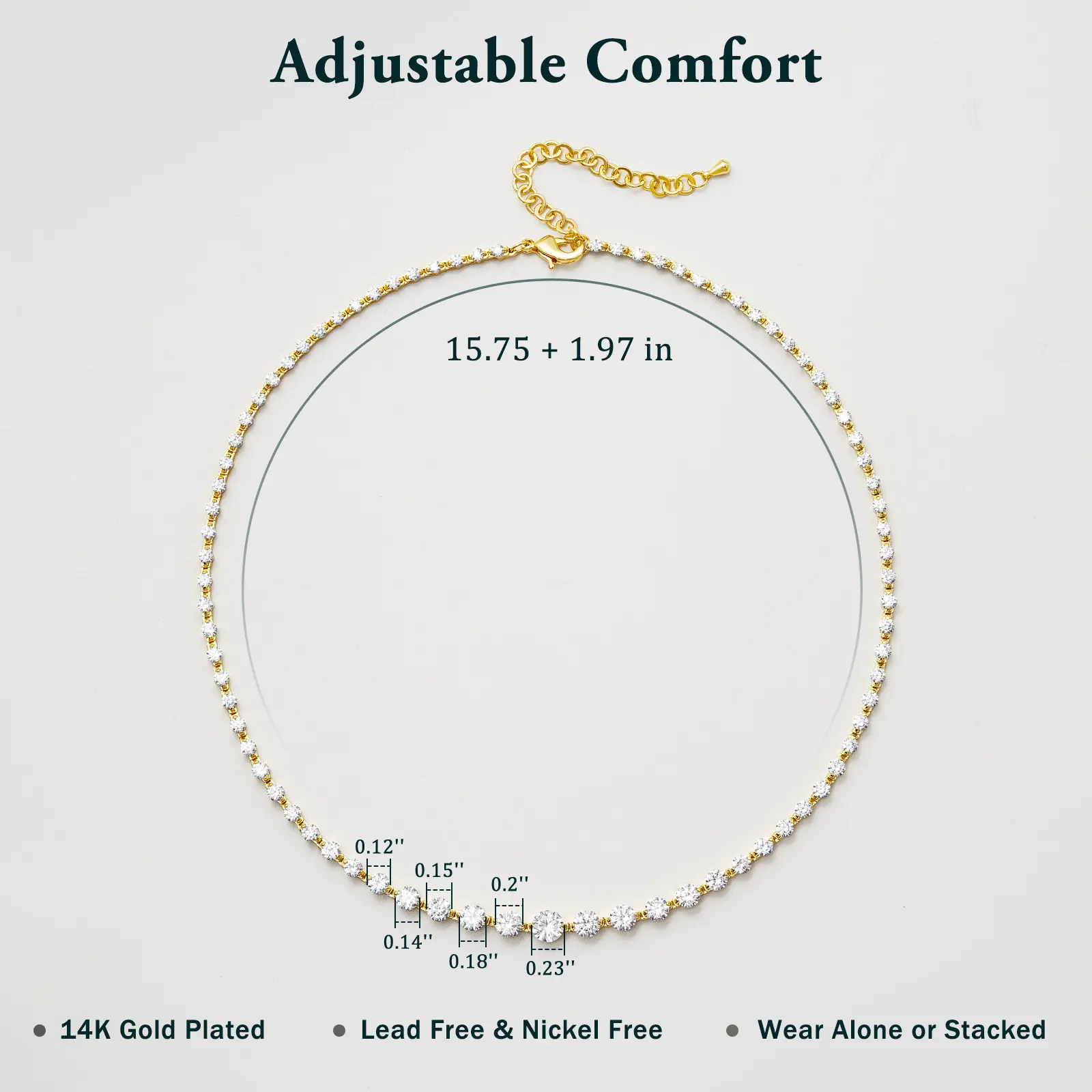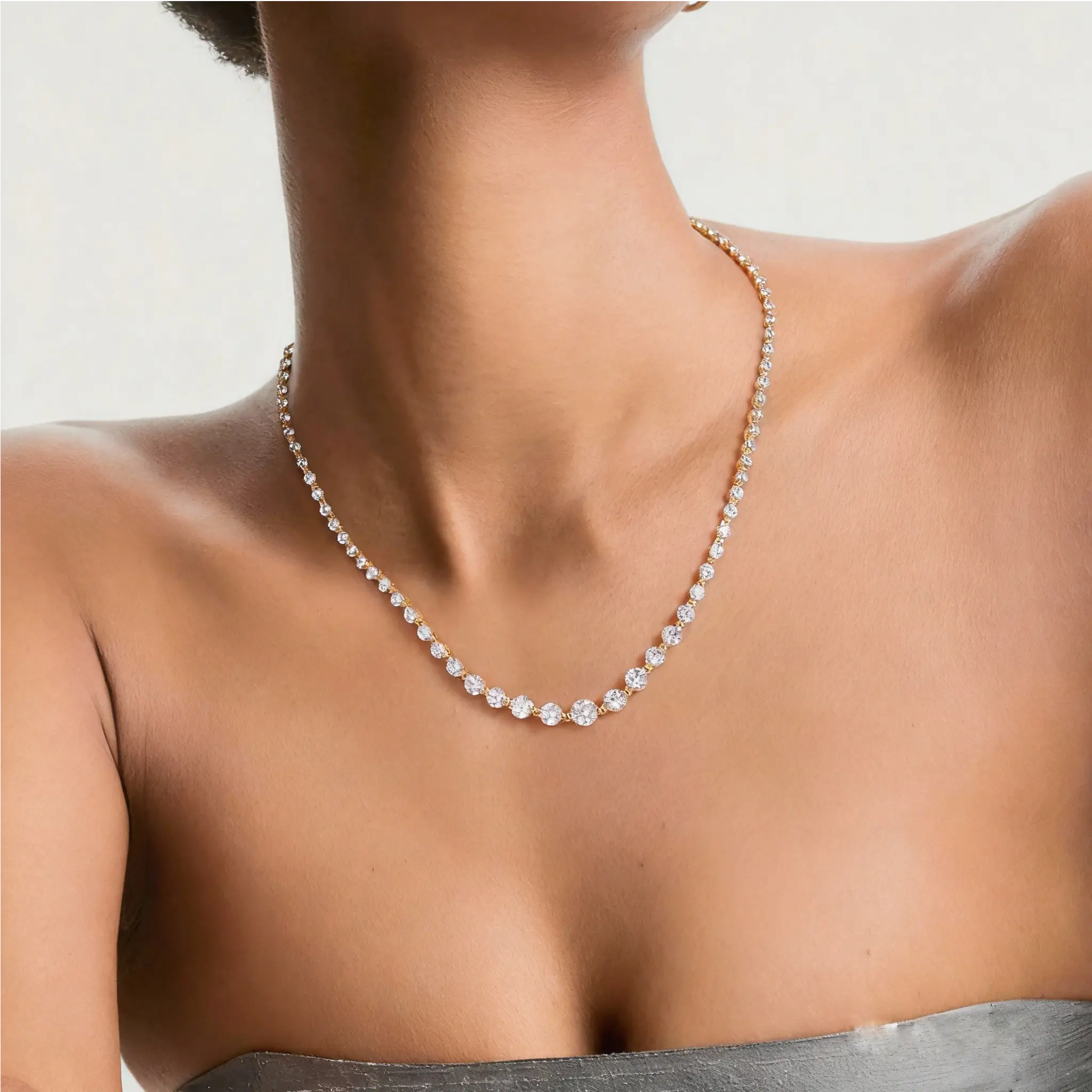Wow! This necklace is so sparkly! I love the graduated size of the stones. It has such fire and brilliance! The quality looks like diamonds without the price tag! Highly recommend!