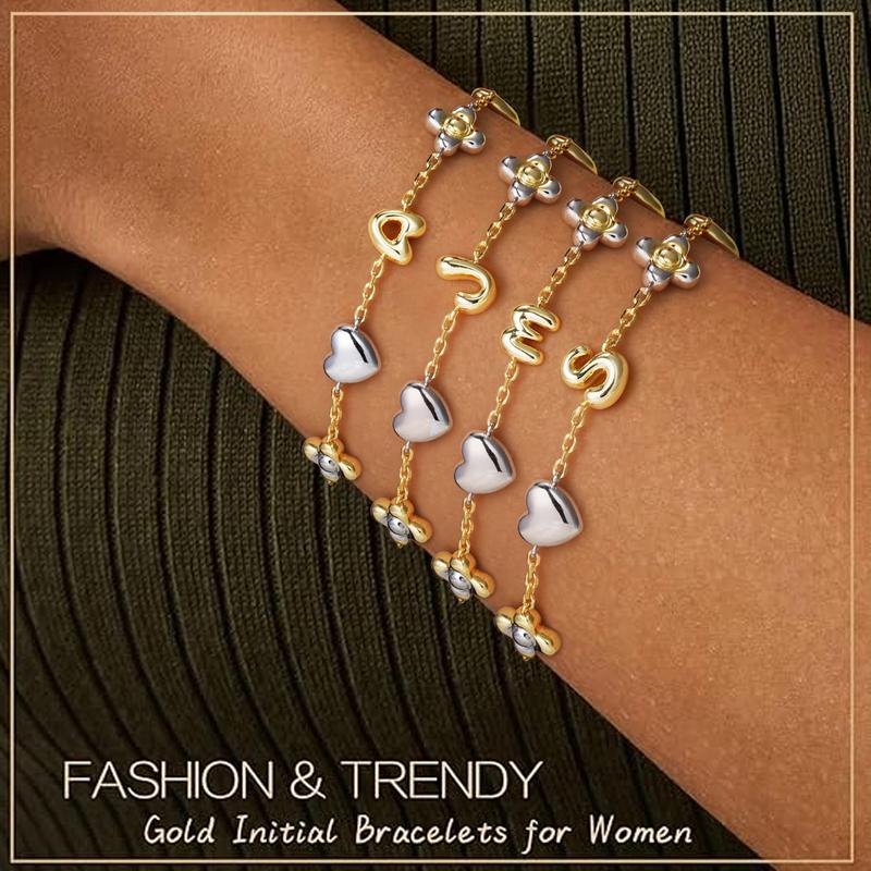 [Meaningful Initial Design] This dainty initial bracelet lets you wear your letter, name, or a loved one’s initial close to your heart. It features two hearts and two flowers, each in gold and silver tones, for a delicate, meaningful, and stylish look.