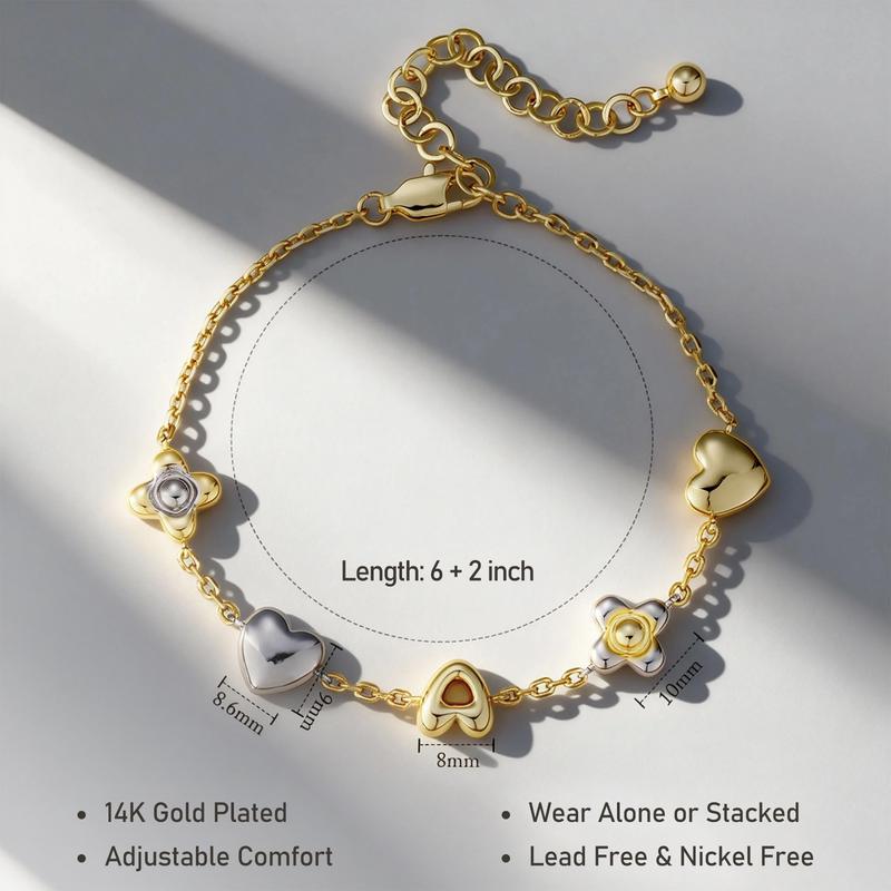 [Premium Material] Crafted with 14K gold plating, this bracelet is nickel-free, lead-free, and hypoallergenic. Resistant to fading and gentle on skin, making it perfect for all-day wear.