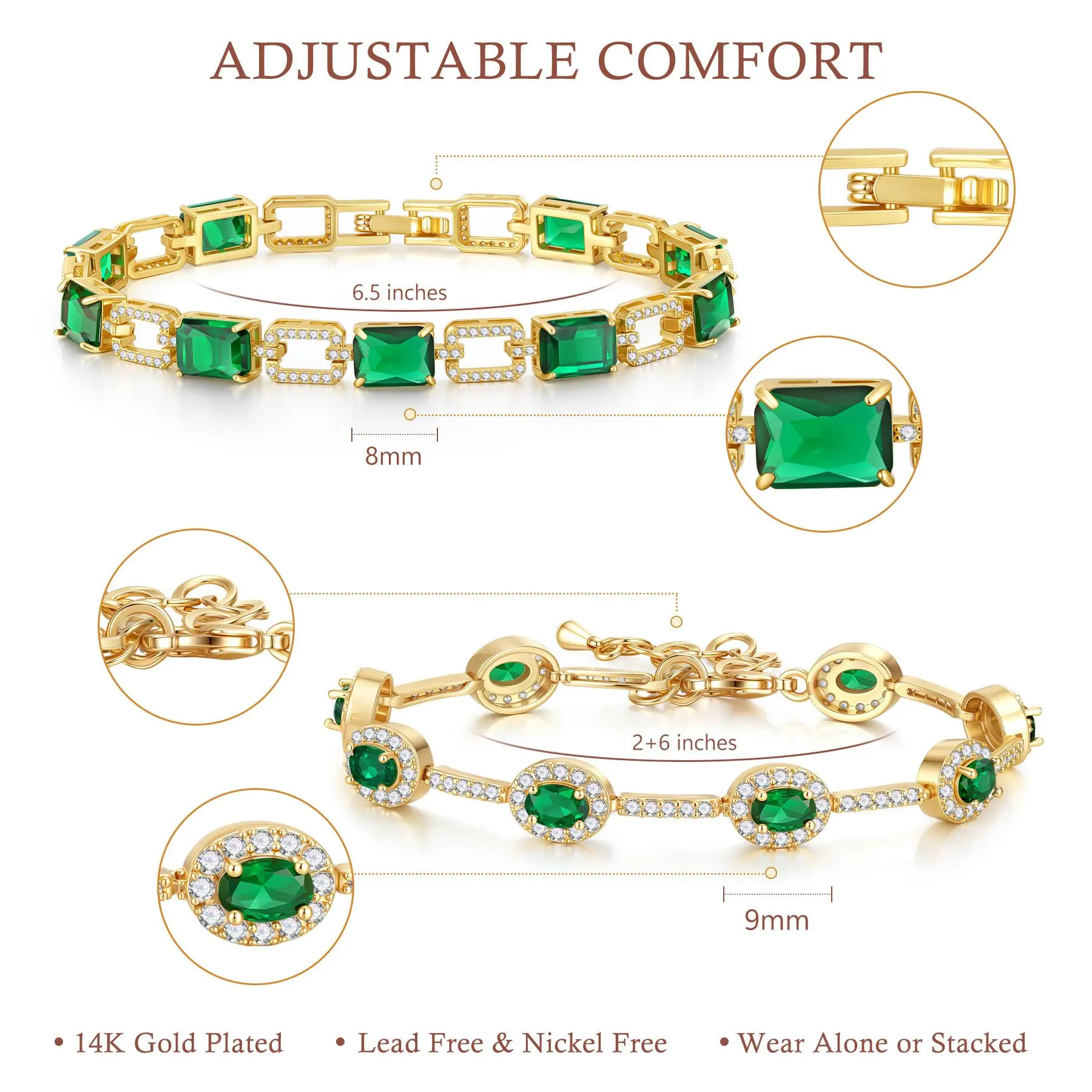 Each bracelet features 5 mm * 3 mm CZ stones that create a delicate yet eye-catching sparkle without appearing too large.
