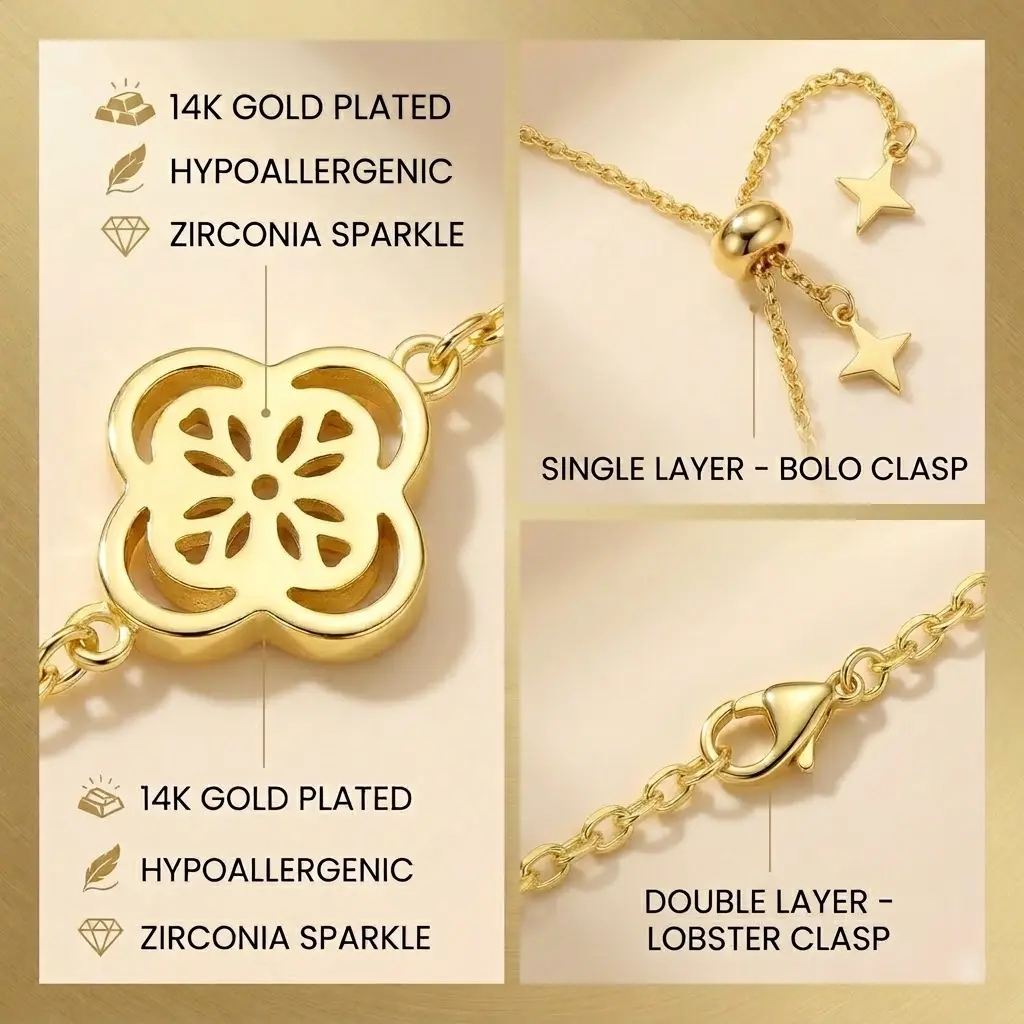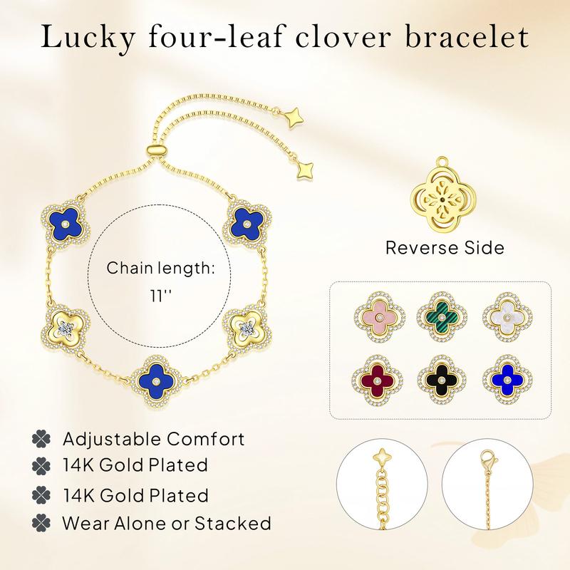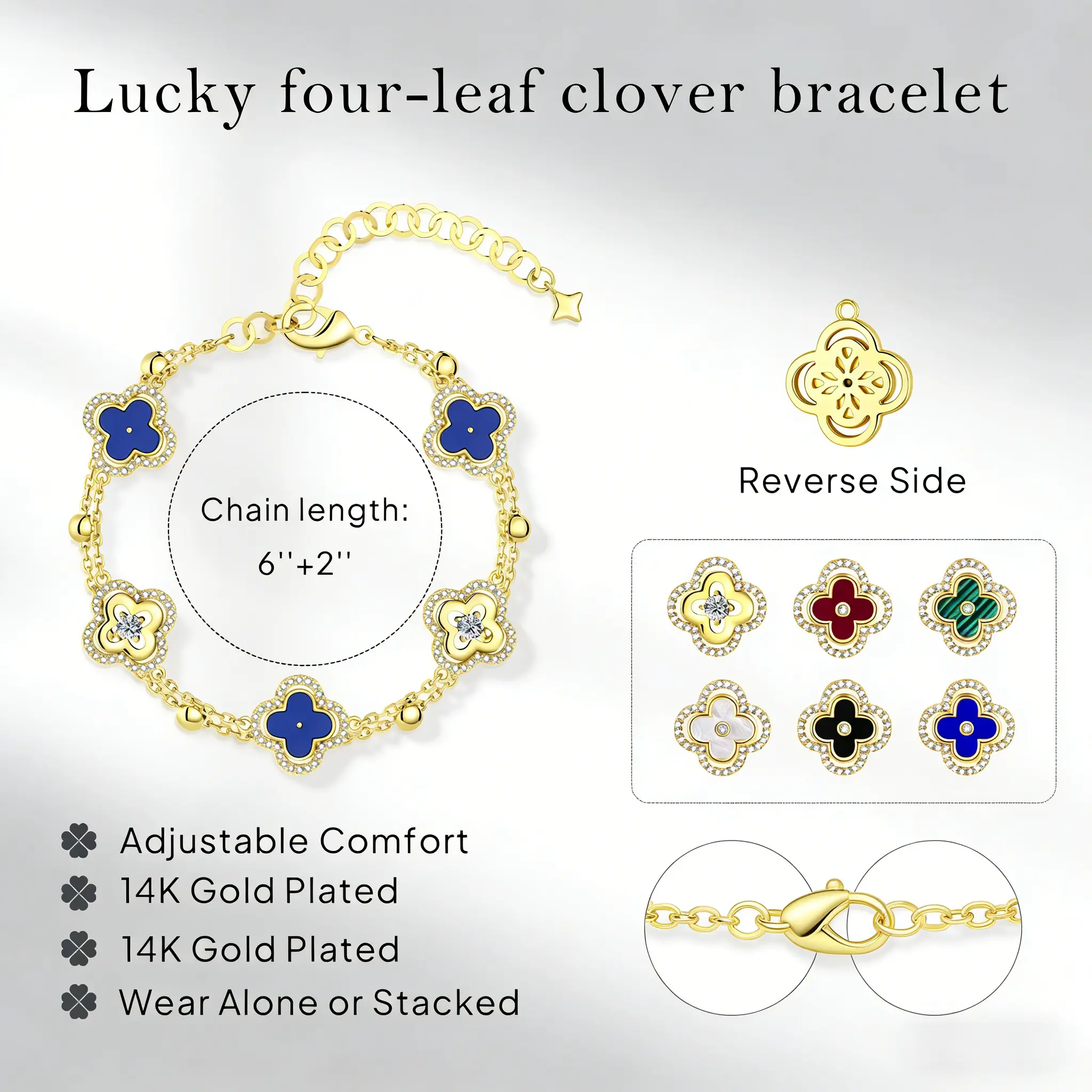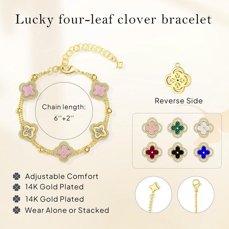 [Lucky Clover Meaning] The four-leaf clover is a symbol of rare luck. Each leaf represents true love, health, success, and wealth, making this bracelet a meaningful charm for everyday wear or gifting.