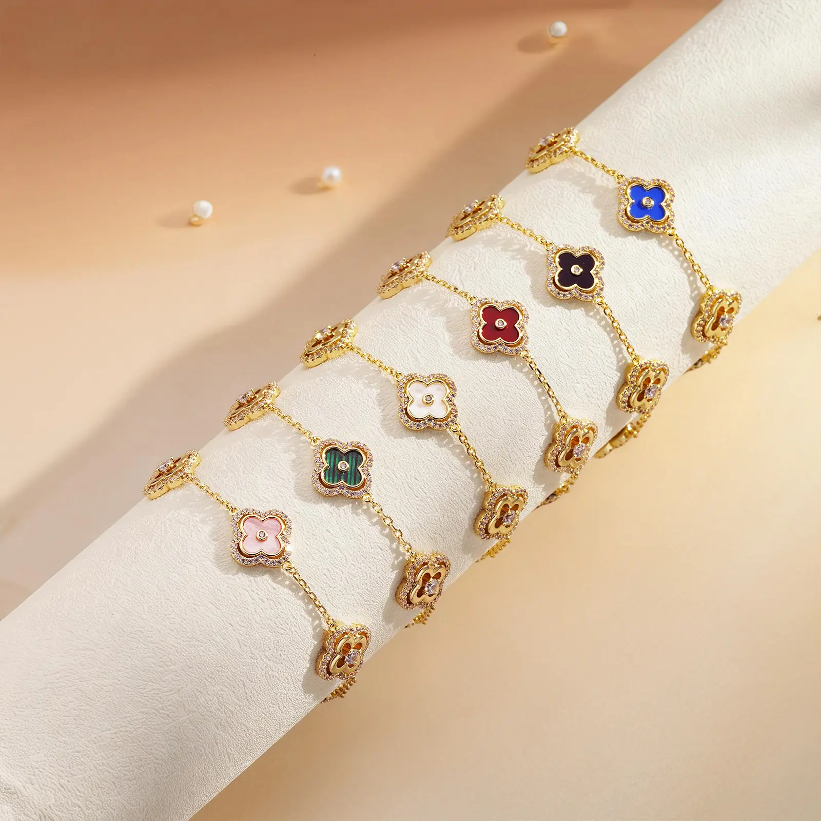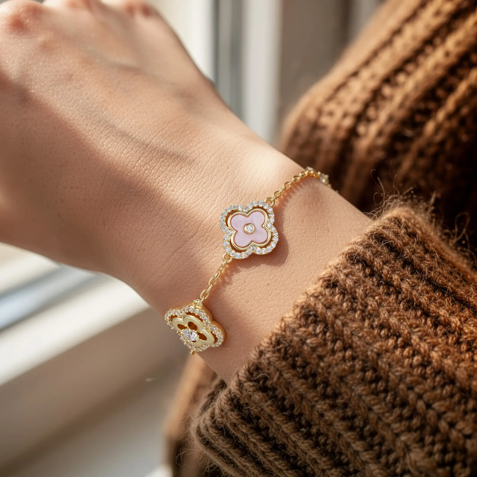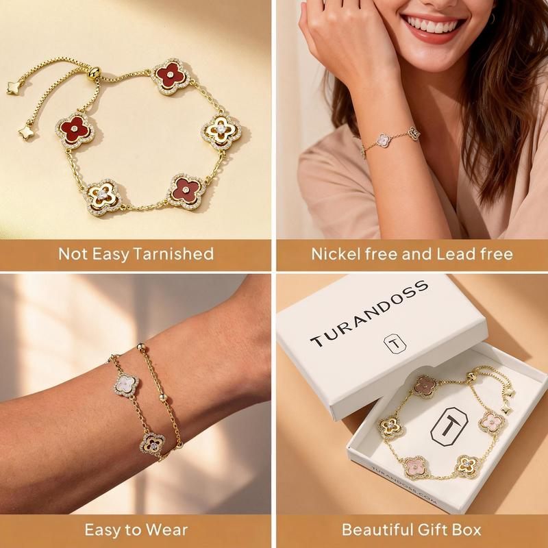 [Lucky Clover Meaning] The four-leaf clover is a symbol of rare luck. Each leaf represents true love, health, success, and wealth, making this bracelet a meaningful charm for everyday wear or gifting.
