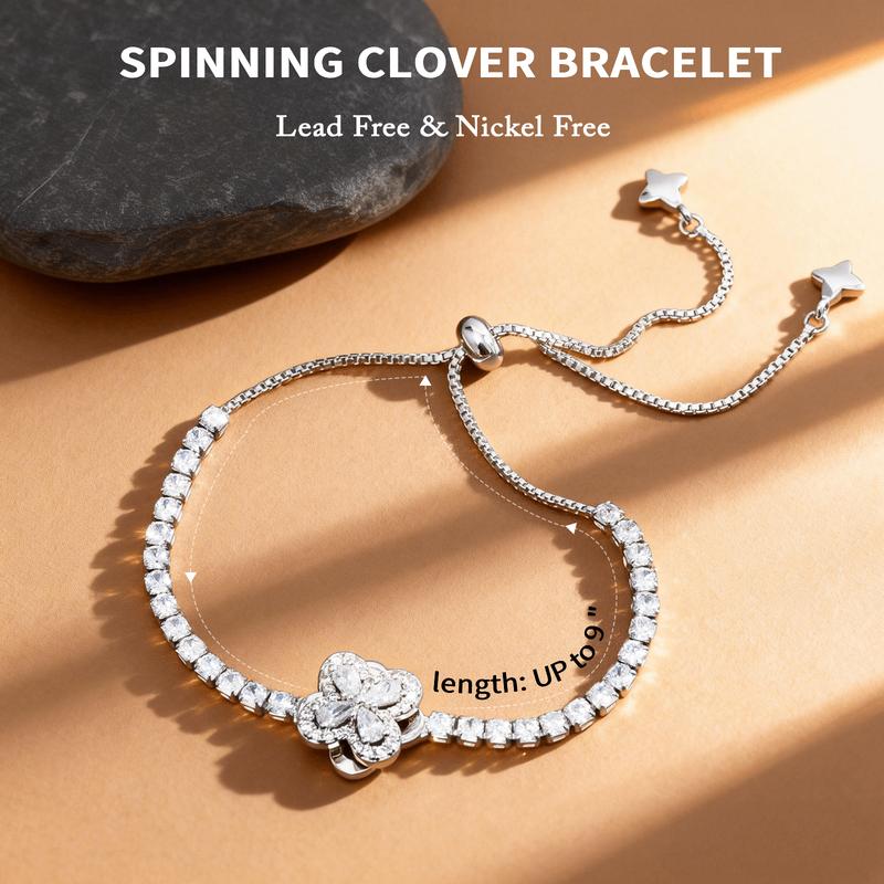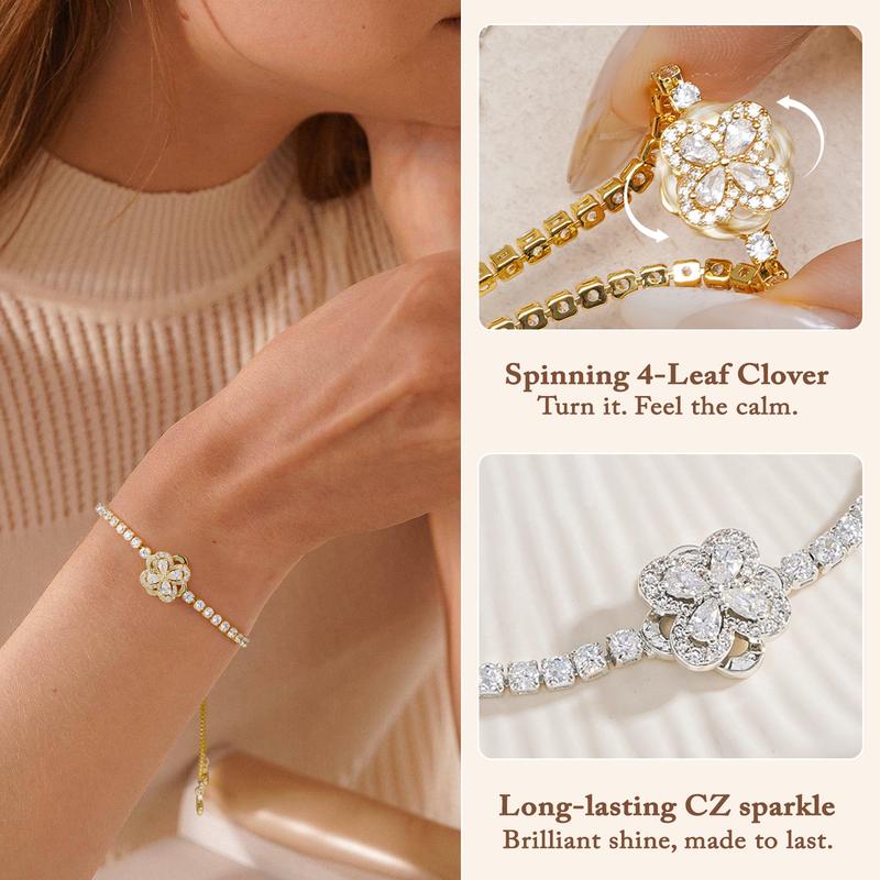 Turandoss Spinning 4-Leaf Clover Bracelet for Women, (6”–9”)Adjustable Fidget Bracelet , Jewelry Gifts