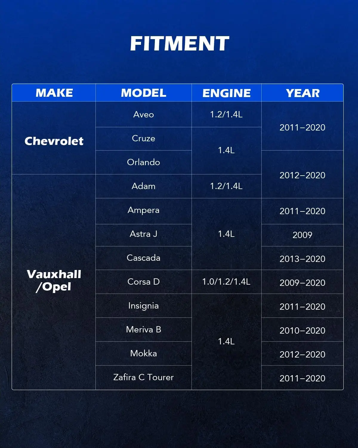 WIDE COMPATIBILITY: This engine timing tool set is compatible with 1.2L & 1.4L Chevrolet Aveos, Cruzes, & Orlandos as well as 1.0L, 1.2L, & 1.4L Vauxhalls & Opels including the Adam, Ampera, Corsa D, Cascada, Insignia, Meriva B, Mokka, & Zafira C Tourer