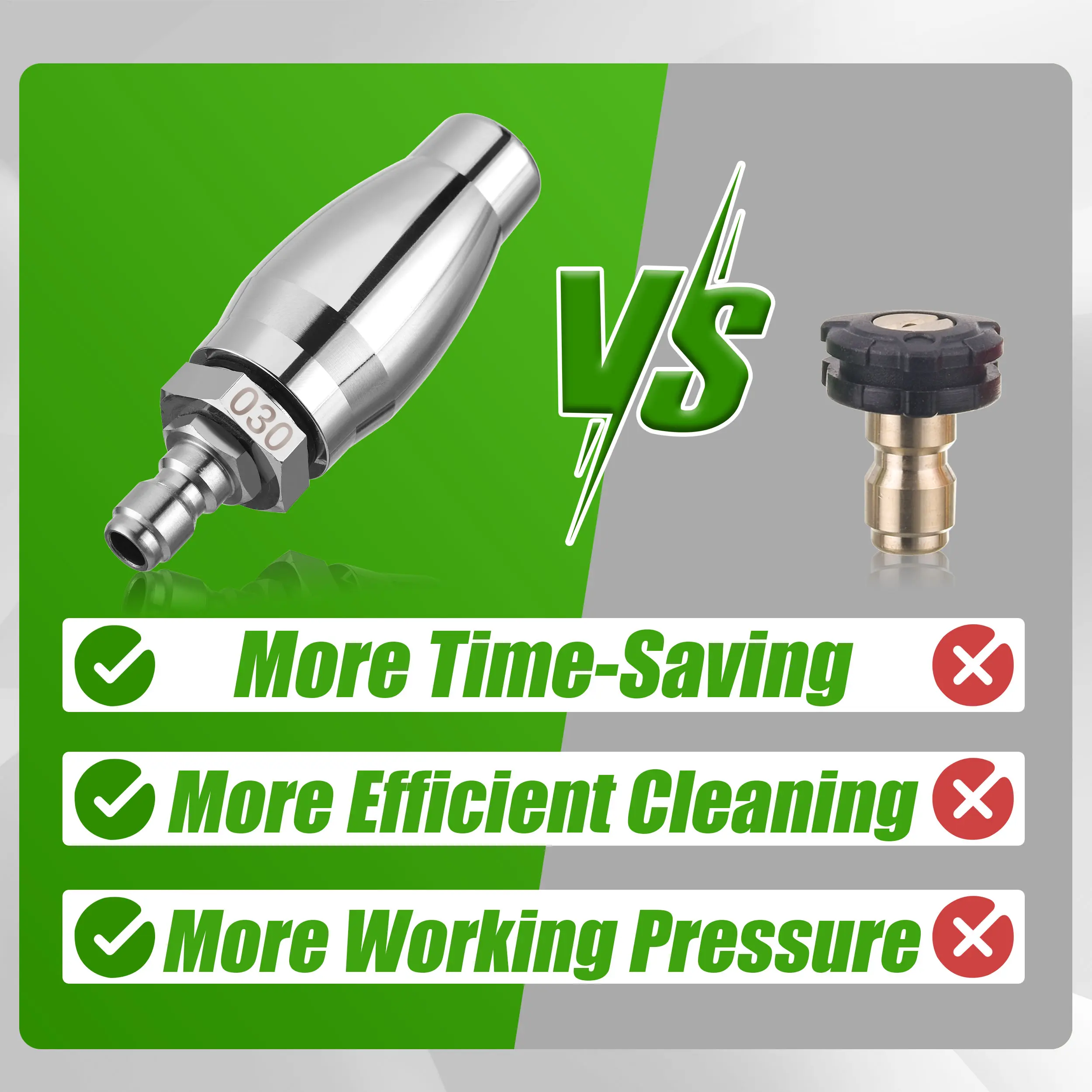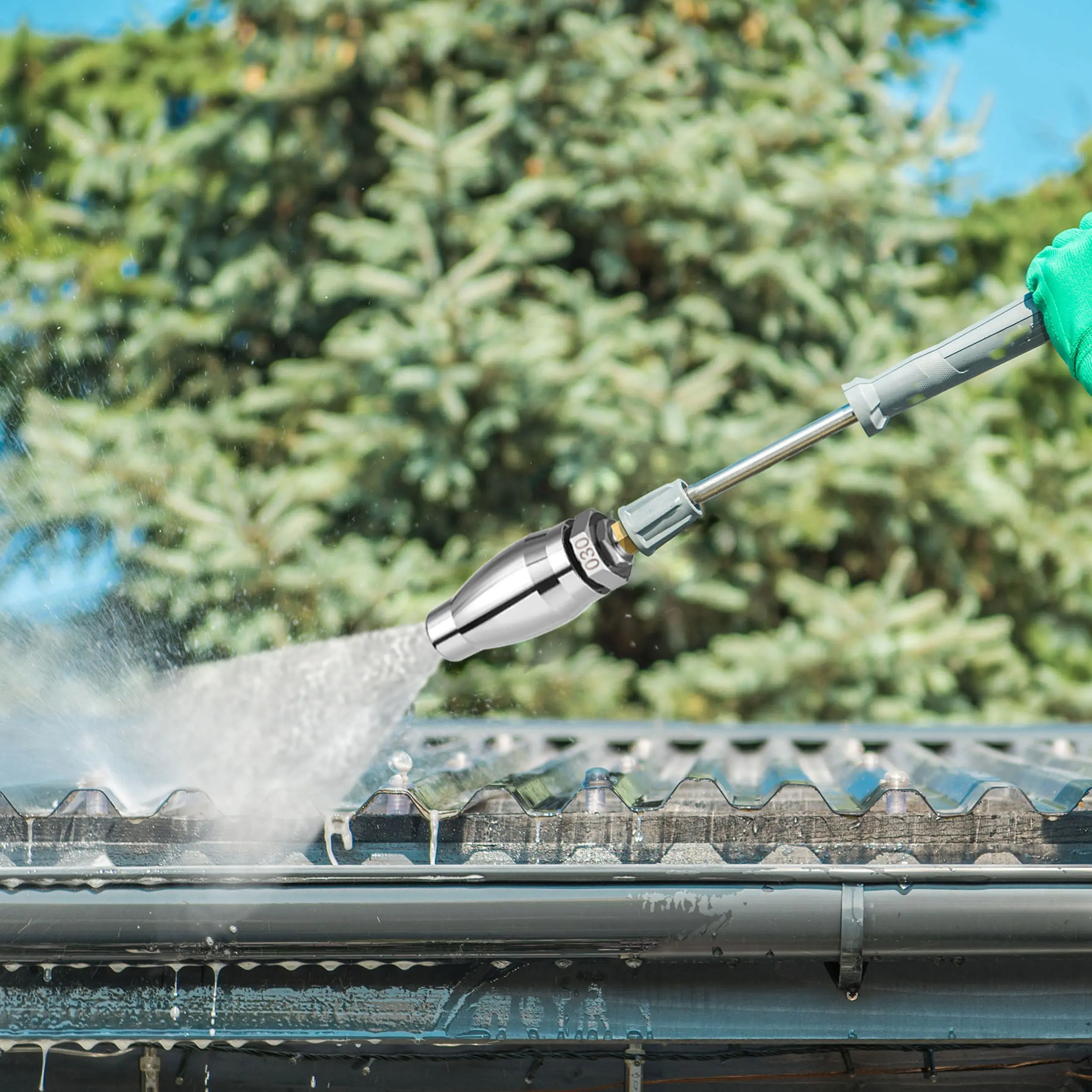 ·STRONGER CLEANING POWER: The newly upgraded stainless steel turbo nozzle pressure washer provides a stronger and faster rotating jet that jets out a much higher flow of water, effectively increasing your efficiency when cleaning dirty floors and heavy soiled areas.