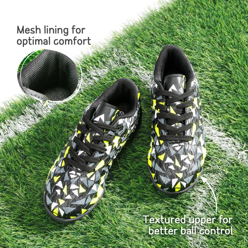 ·Durable and non-slip sole with rubber cleats provides extra stability and grip, perfect for turf soccer pitches