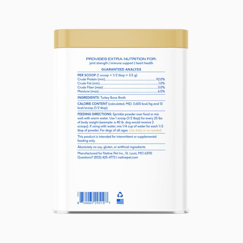 My dog loves the Native Pet Turkey Bone Broth! I mix it into his meals, and he licks the bowl clean every time. I love that it’s made with simple, clean ingredients and adds a healthy boost to his diet. Super easy to use and great for hydration — definitely a staple in our house!