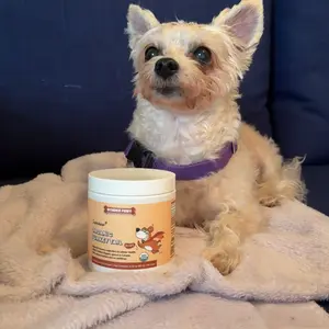 Lo compré porque mi perrita que ya tiene 13 años desde que llegó a EEUU había estado presentando muchas alergias en su piel, no sabía si era alimentaria o ambiental pero desde que le estoy dando este producto han disminuido mucho, sea cual sea la causa de la alergia he visto mejoras, está yendo al baño regular ya que antes no hacía caca 💩 lo recomiendo ✨👏