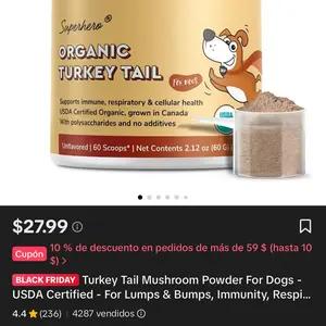 Es muy buen producto para mi perro le está allí dando con los tumores de grasa sele están reduciendo un poco