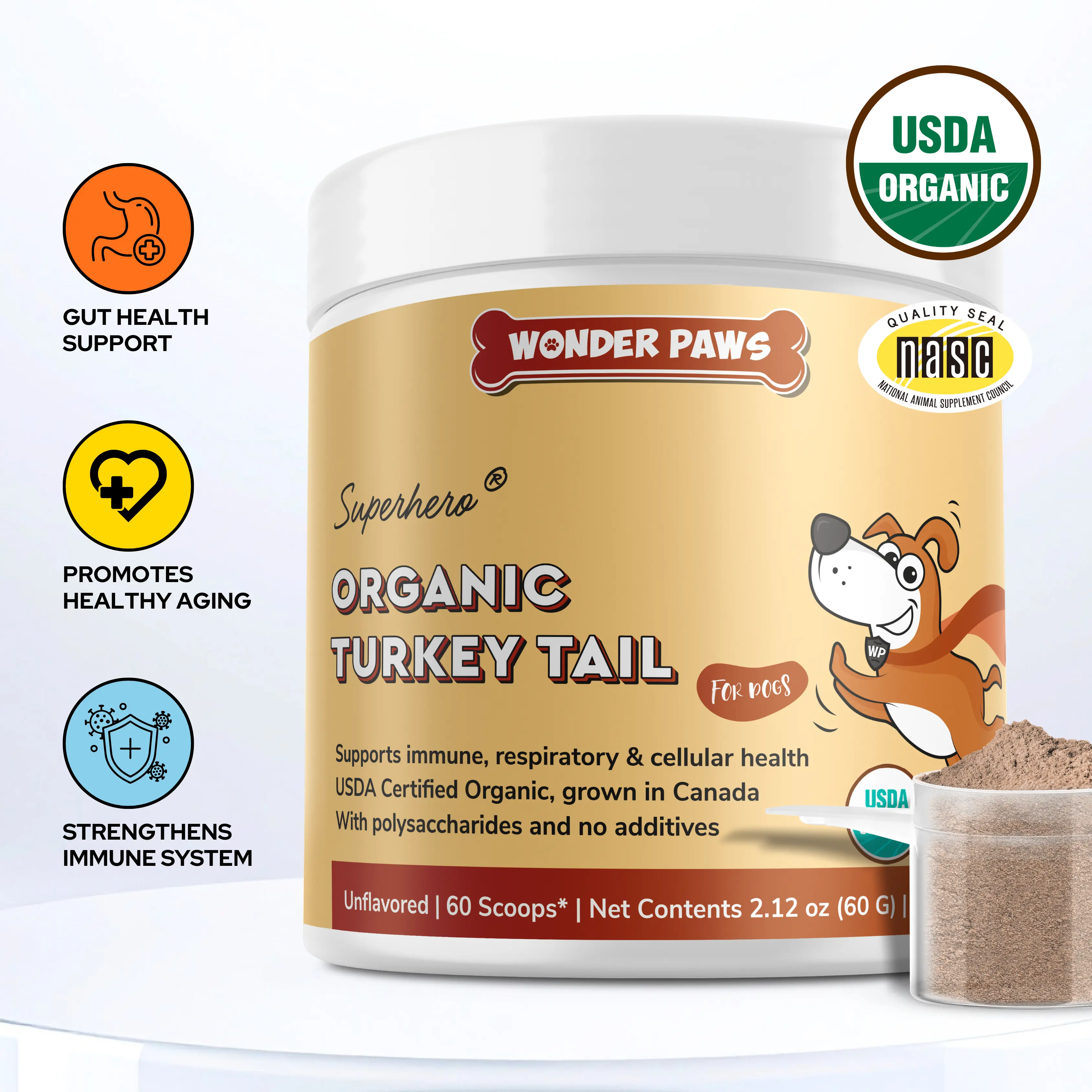 Soporte Inmunológico y Celular: Es el principal beneficio promocionado y reportado. Muchos dueños lo usan para apoyar a sus perros con bultos, protuberancias (lumps and bumps) o para el apoyo general contra el cáncer/tumores, a menudo con la esperanza de ralentizar su progresión o apoyar la salud celular.