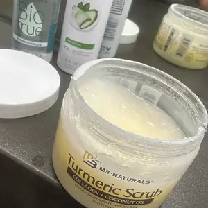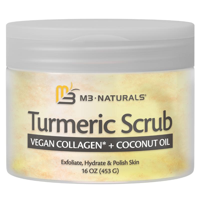 M3 Naturals Exfoliating Turmeric Body Scrub with Collagen, Coconut Oil, and Shea Butter to Gently Exfoliate Skin, Face, Hands, Feet, and Body 16oz