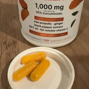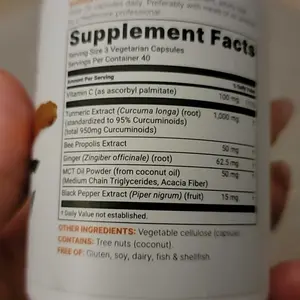 After taking for over a month now the De Quervain's tenosynovitis in my hand has gone away. I also don't have much pain in other parts of my back and joints. Then I got my 3rd bottle and it wasn't Turmeric. Not sure what it was but the color of the content in the capsule was tan not orange.