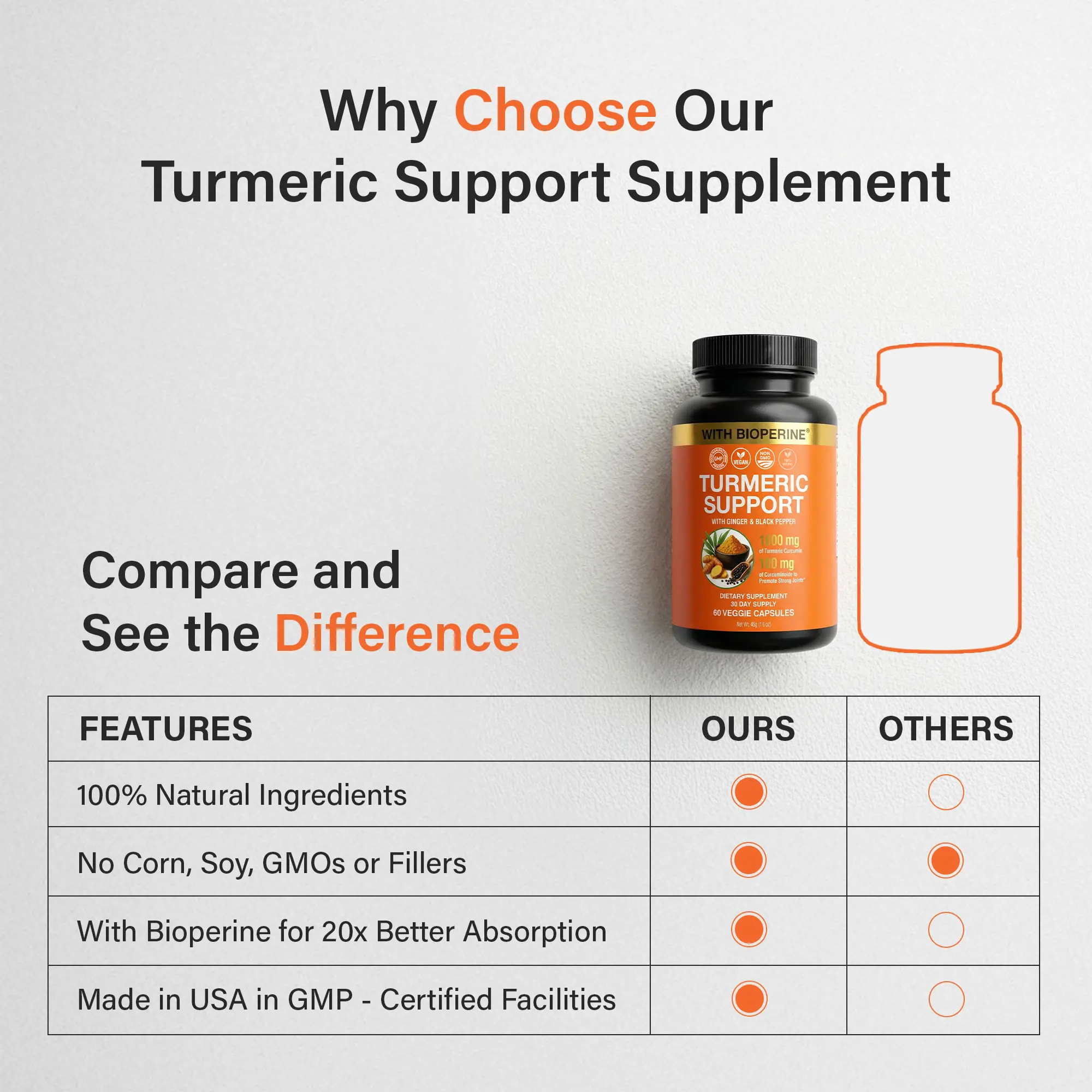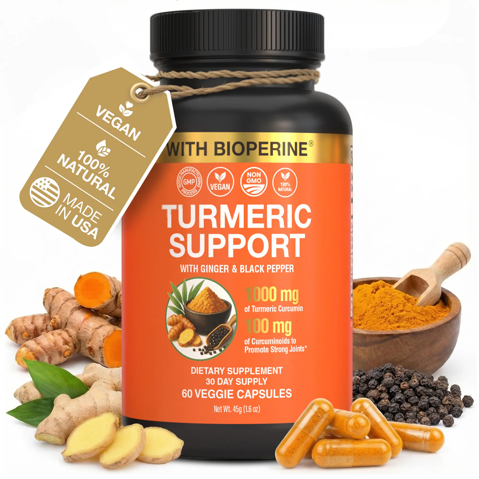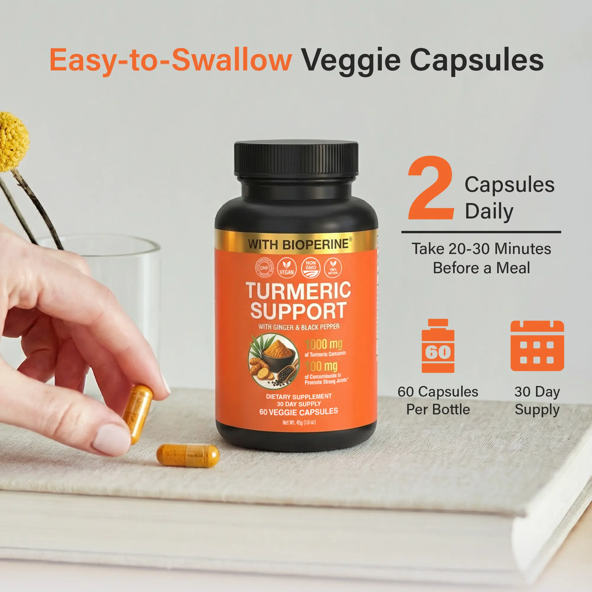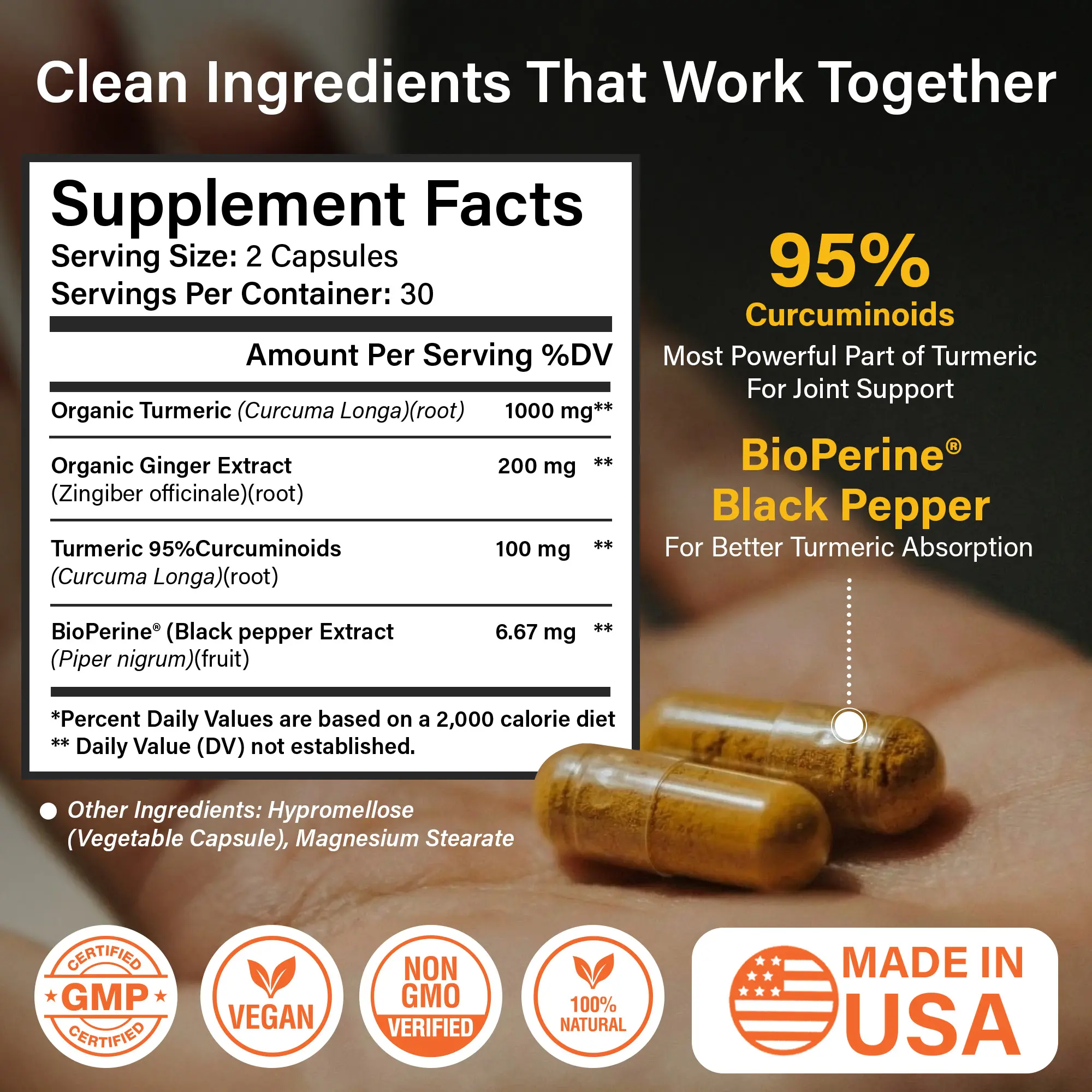 ·CLEAN LABEL: VEGAN, NON-GMO & THIRD-PARTY TESTED: Made with turmeric, no fillers, no sugar, gluten free, no soy, and no artificial ingredients. Manufactured in a GMP-certified facility with third-party testing for purity, potency, and safety.