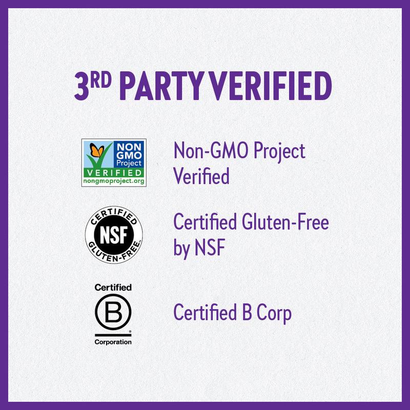 Certified Gluten-Free by NSF; 100% vegetarian; no artificial flavors or colors.