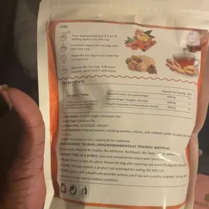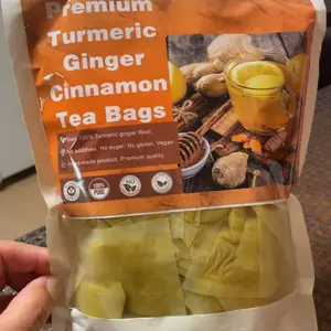 Elevate your tea experience with our Premium Turmeric Ginger Cinnamon Tea Bags. This 120-count pack offers a blend of 100% natural ingredients, crafted into a handmade vegan Chinese herbal mix. Each bag is free from additives, sugar, gluten, and caffeine, ensuring a pure, natural beverage. Perfect for those seeking authentic, unadulterated tea.