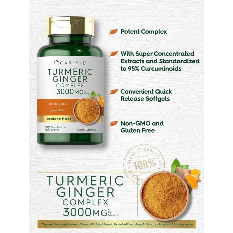 At Carlyle, we source the finest traditional herbs from nature to use in our herbal supplement. Our Turmeric & Ginger Complex is made with potent concentrated herbal extracts, delivering Turmeric and Ginger plus Black Pepper all in convenient quick-release softgels.