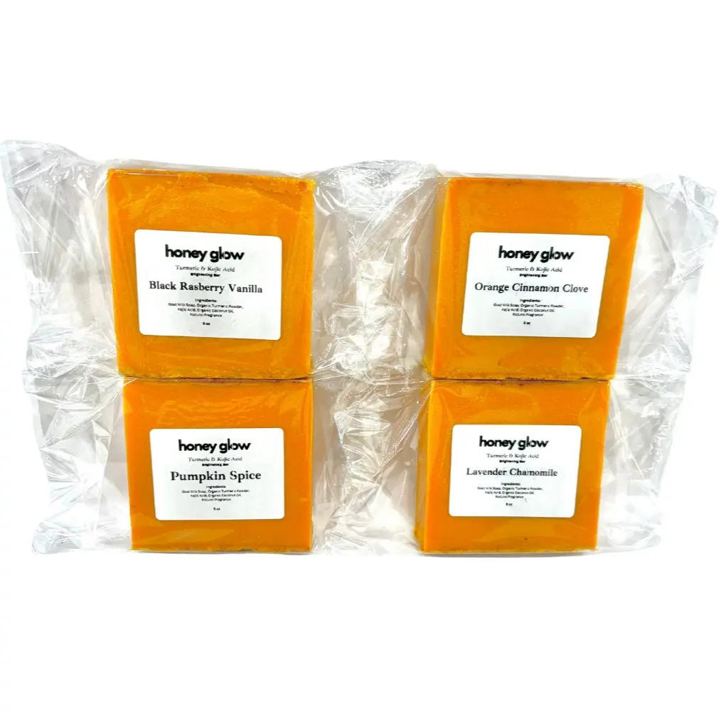 Our Turmeric & Kojic Acid 4 Pack elevates your skincare routine with energizing scents like Orange Cinnamon Clove and calming Lavender Chamomile. Designed to help enhance your natural glow, these bars create a spa-like experience, leaving your skin feeling refreshed and radiant. Indulge in the perfect balance of invigorating and soothing aromas for an uplifting self-care moment!