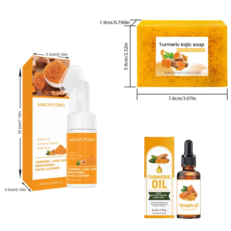 ¡Ideal for those seeking a soothing cleansing routine. The combination of turmeric soap and foaming cleanser ensures a thorough cleanse. đ§ź