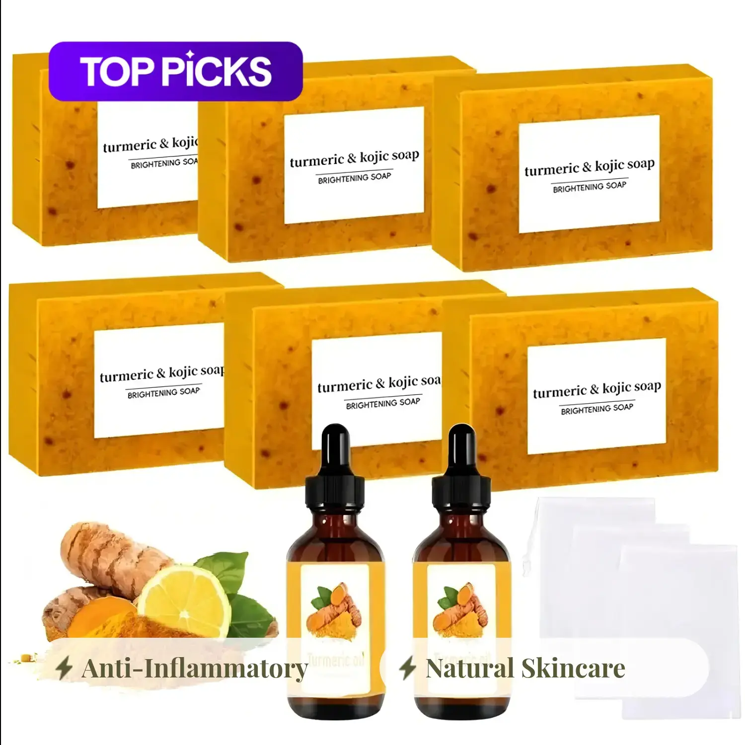 【Comprehensive Care】: With 6 turmeric soaps, 2 essential oils, and 3 soap savers, this set offers a full, daily skincare routine for both men and women.