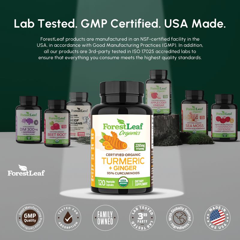 ·BIOPERINE (BLACK PEPPER) FOR MAX ABSORPTION -- Get more from your tumeric curcumin supplements with ForestLeaf. Our formula of 95% curcuminoids includes ginger and BioPerine black pepper extract to enhance absorption, uptake, and bioavailability, amplifying the results.