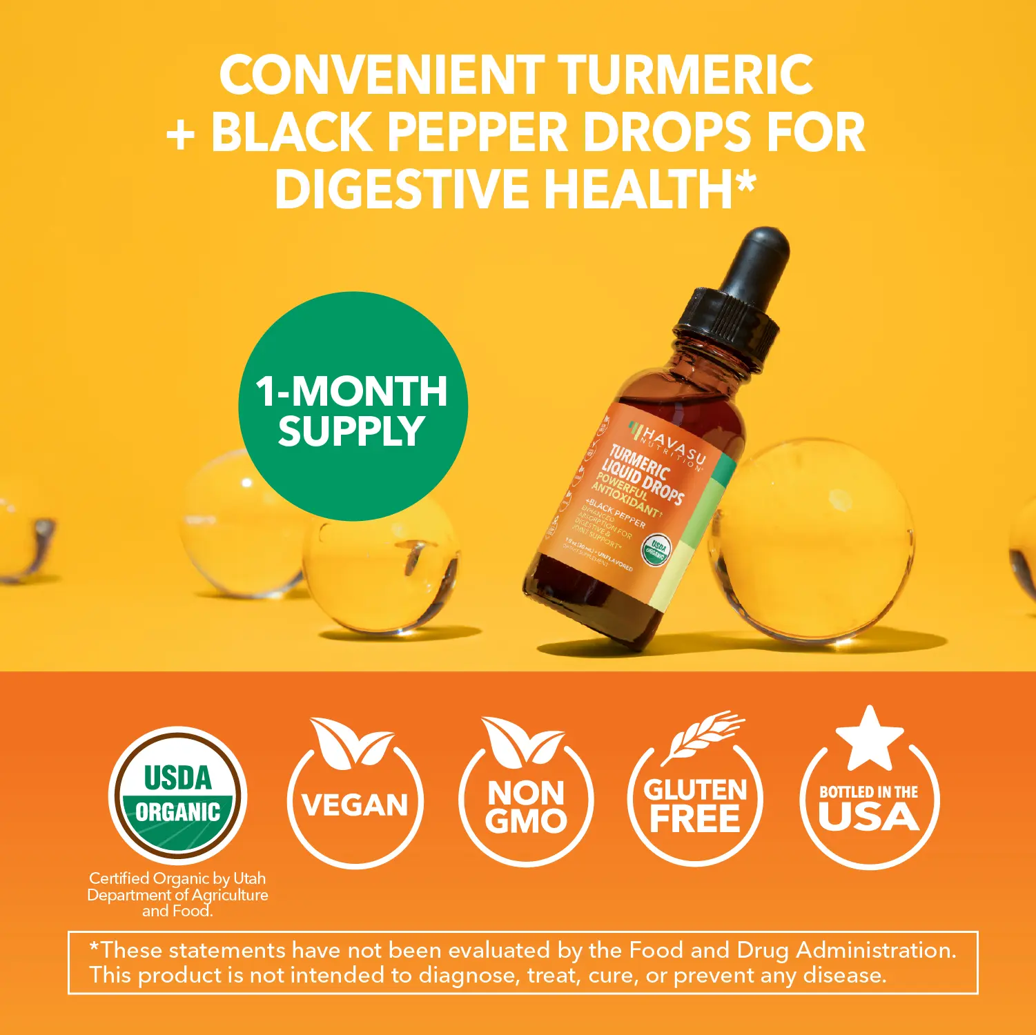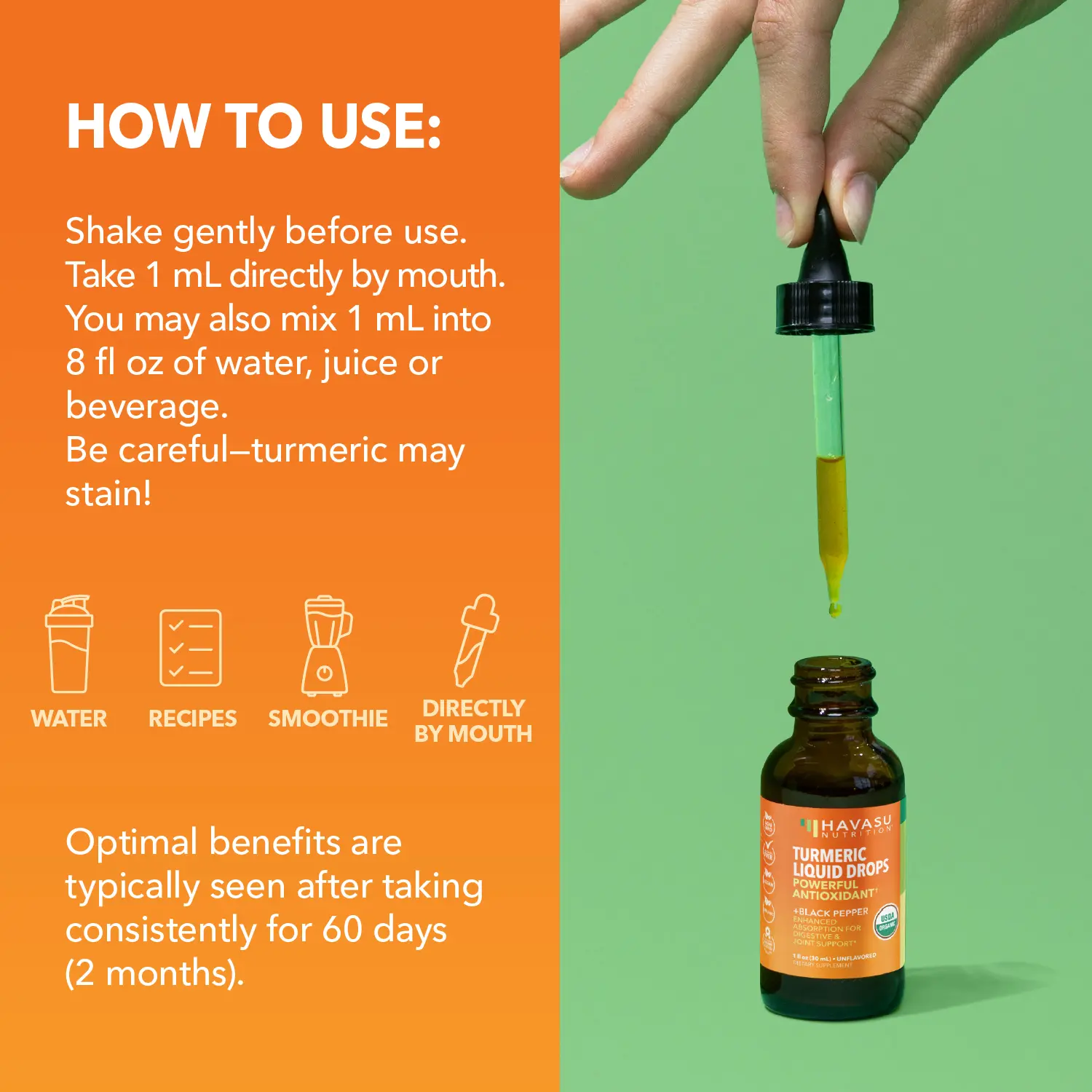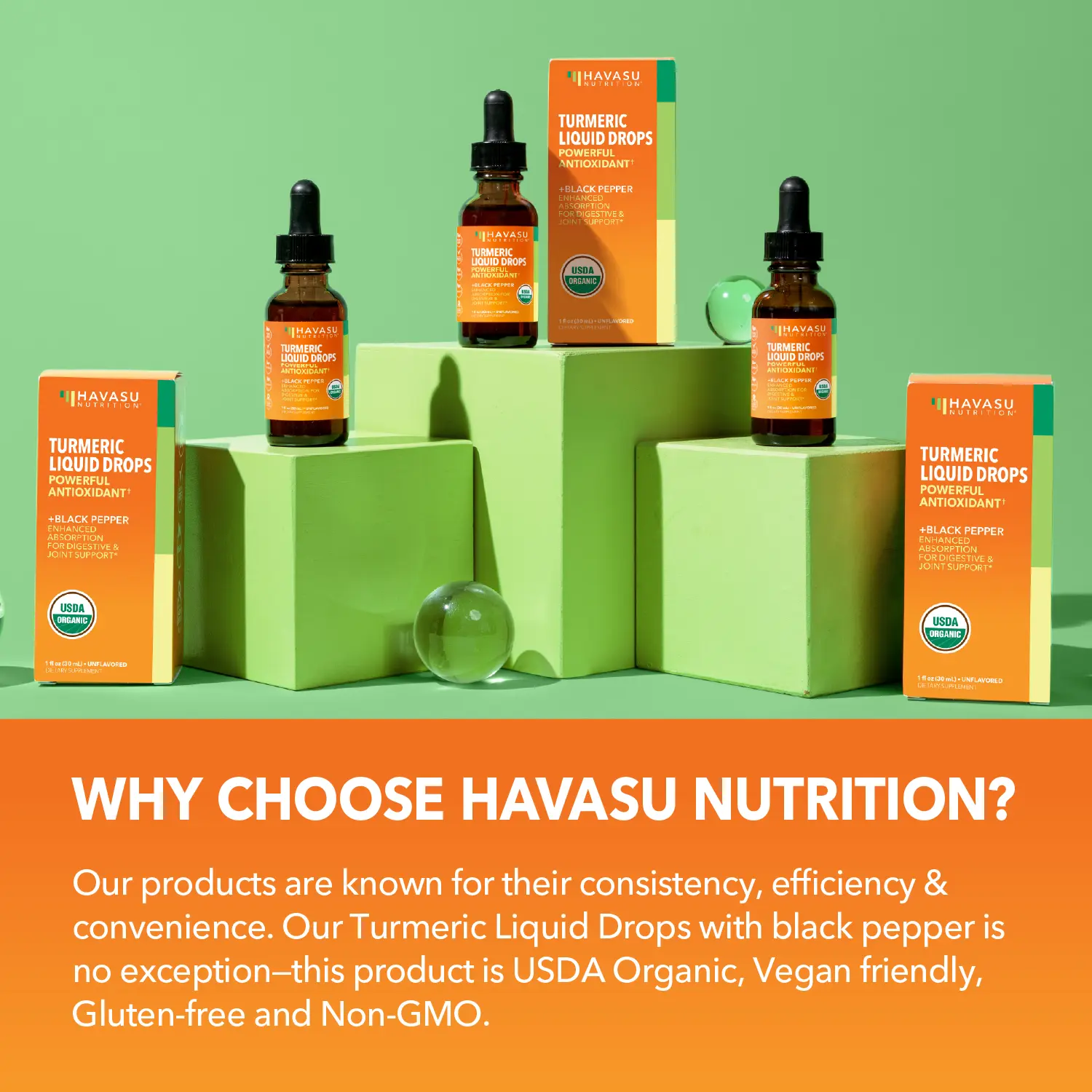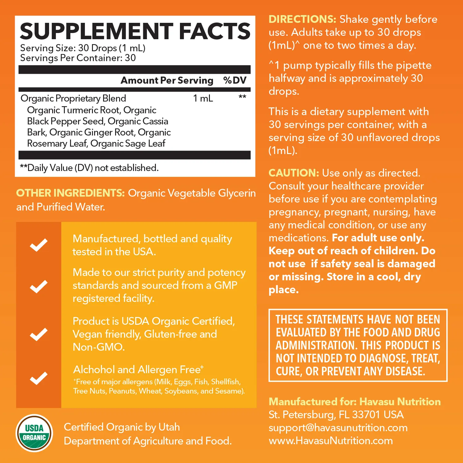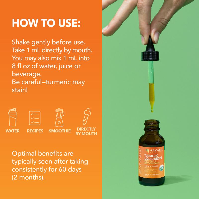 ·USDA Organic Turmeric + Black Pepper Liquid: Havasu Nutrition is a USDA Organic Turmeric Liquid associated with a powerful antioxidant and irritative properties. Lucky for you Havasu contains natural and organic ingredients!