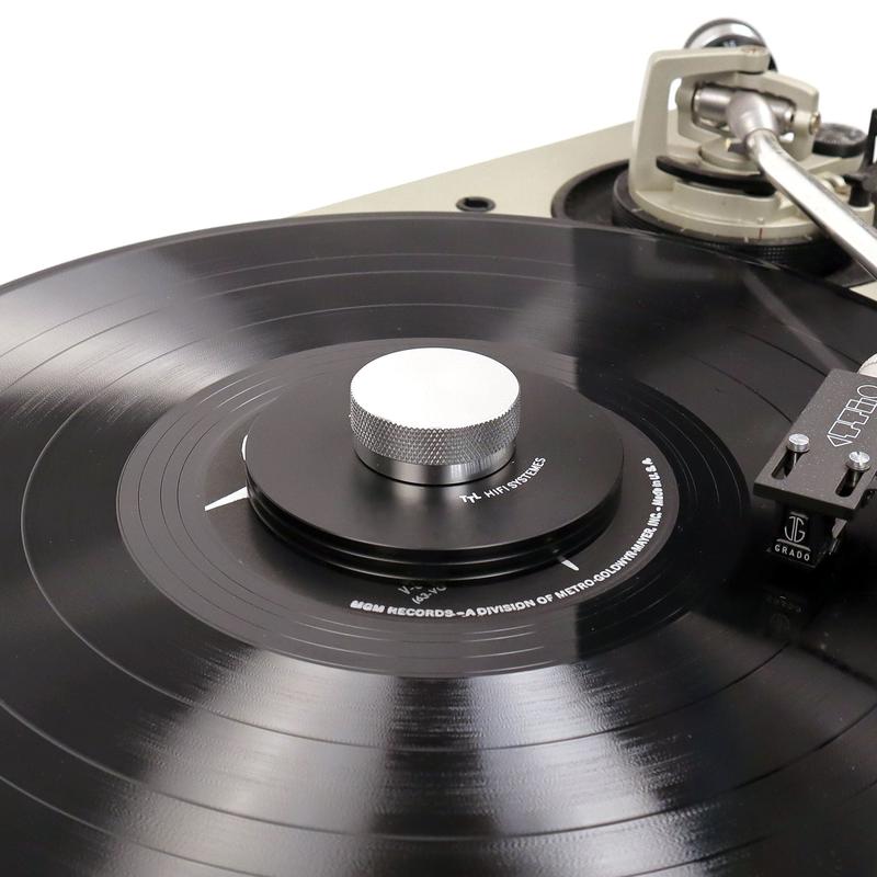 ·the tightening mechanism grips onto the turntable's spindle, keeping the stabilizer in place