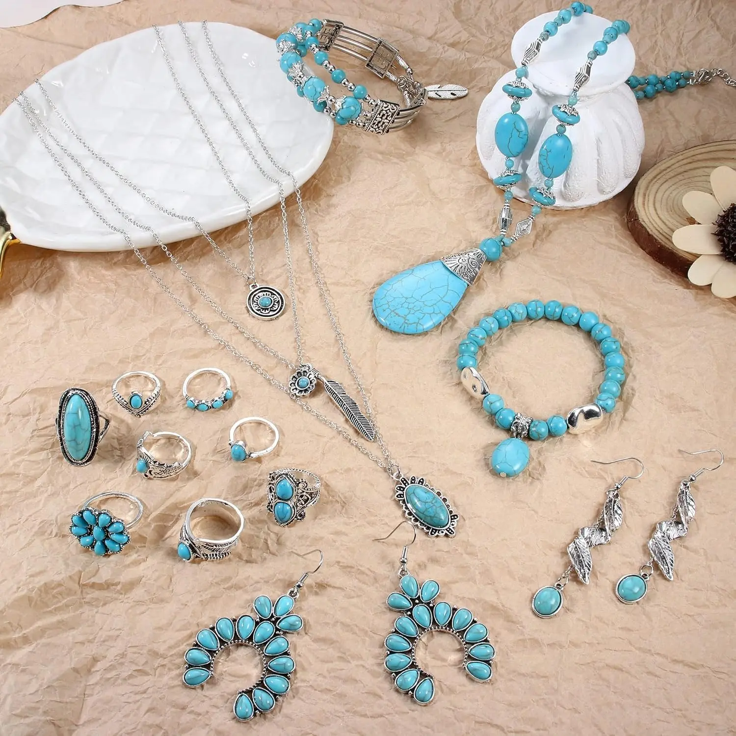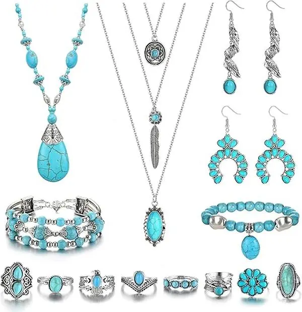 Love this 14 piece set of turquoise đ©” jewelry. What an amazing set for myself and would definitely purchase for a gift. Texas girl here loves her turquoise and this is a great way to make an impression. The color accuracy is perfect. Very comfortable.