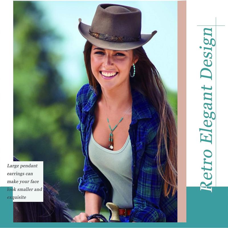 Florideco Bohemian Turquoise Jewelry for Women Men Western Turquoise Set Western Adjustable Belt Rings and Necklace Vintage Turquoise Drop Earrings Bracelet Western Boho Turquoise Jewelry for Women