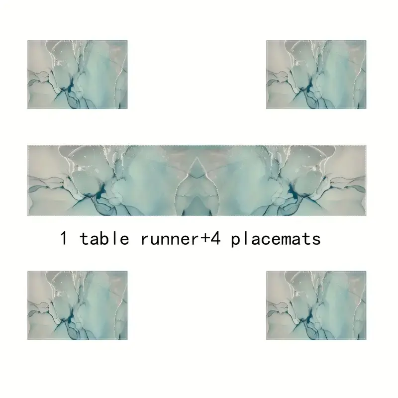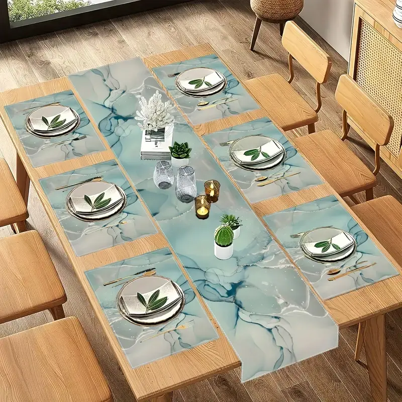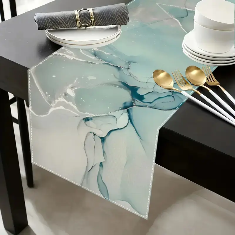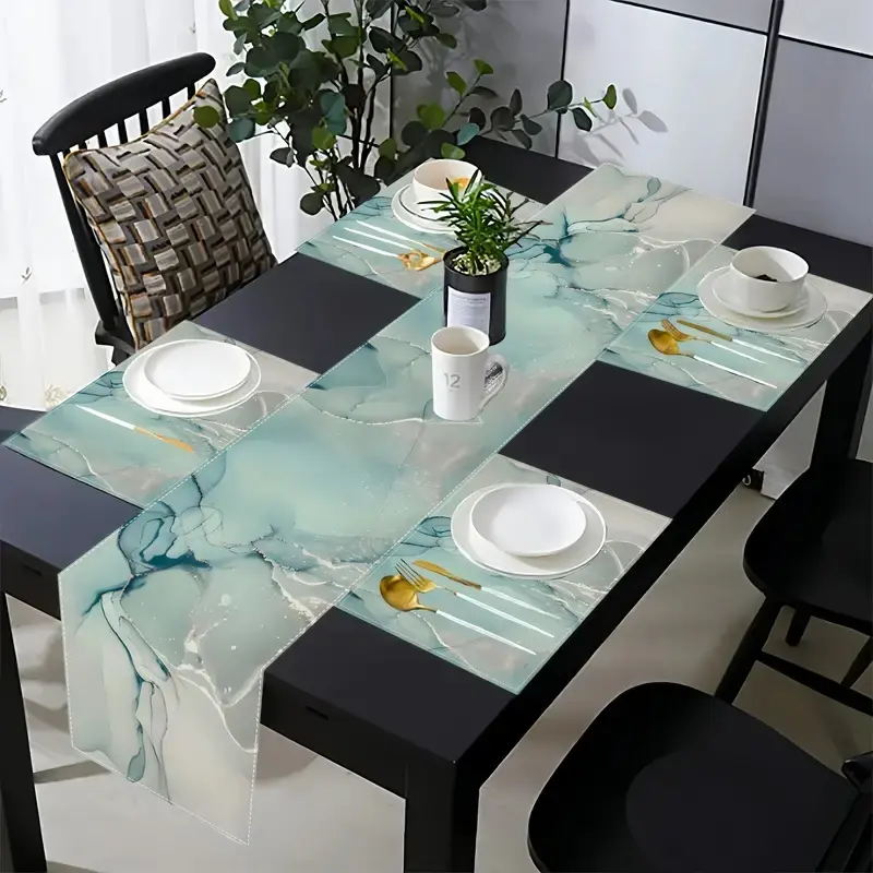 Modern Marble Texture Table Runner Set, Turquoise Color Dining Room Decor, Ideal for Wedding & Holiday Parties, Kitchen Accessories