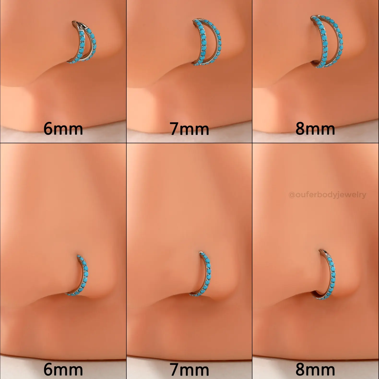 This Oufer 20G Turquoise-Hinged Segment Nostril Nose Piercing Ring is the perfect accessory to complement your new piercing.