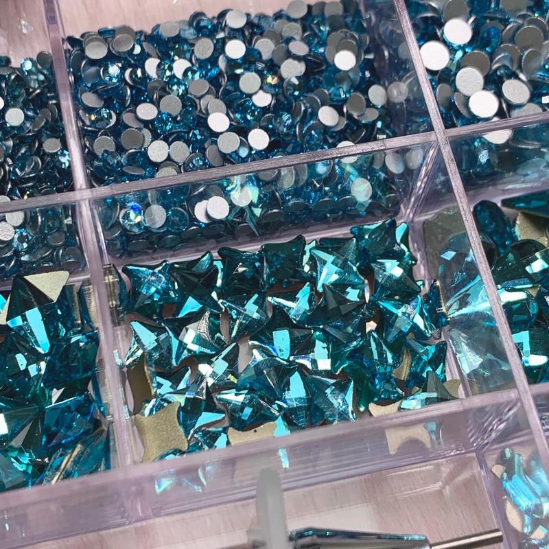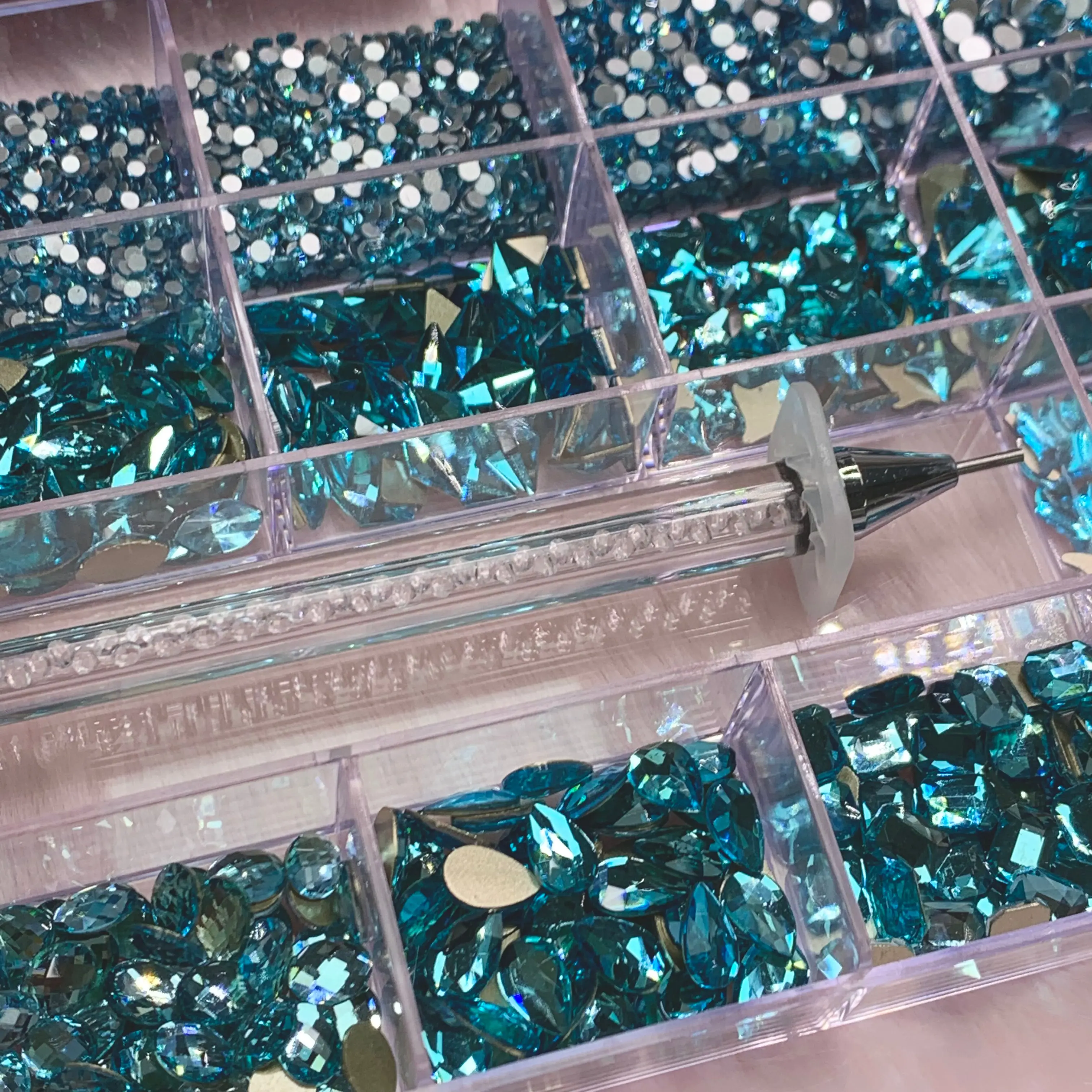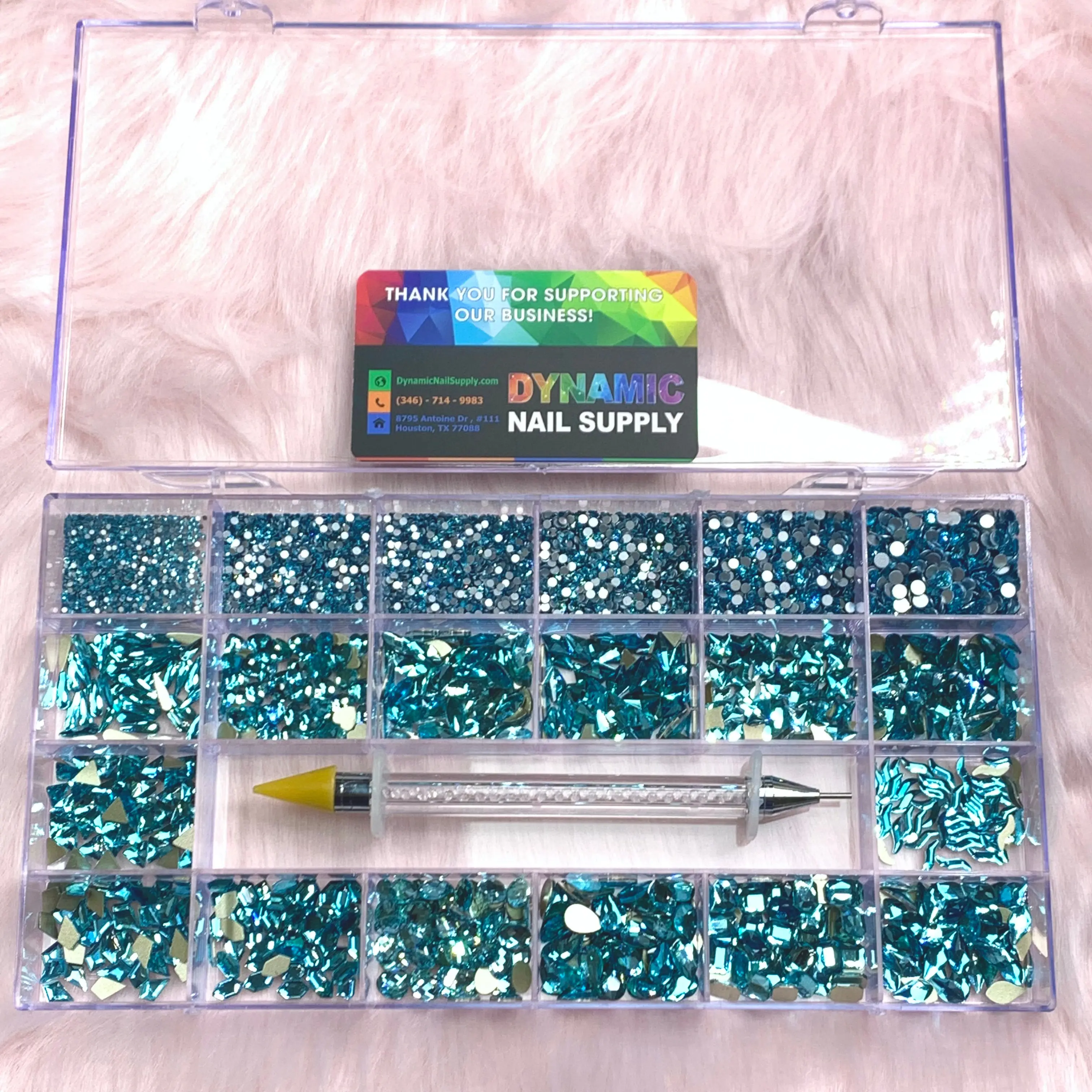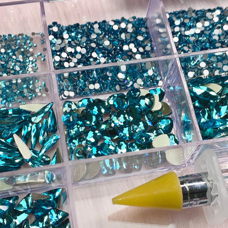 Turquoise (Light Blue Cyan) Rhinestones set - 20 cells - 14 big shapes and 6 round shapes