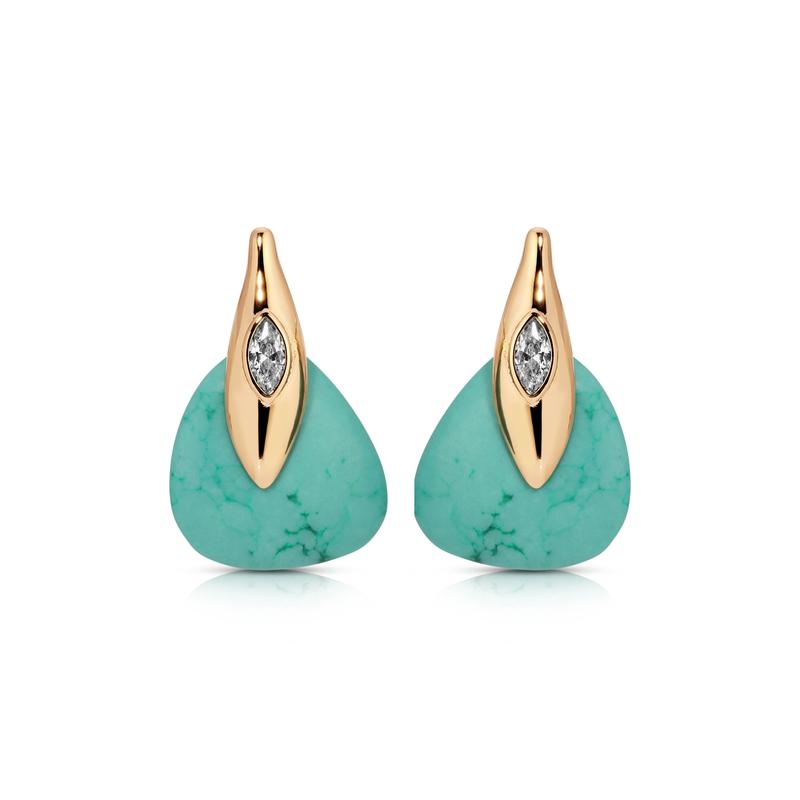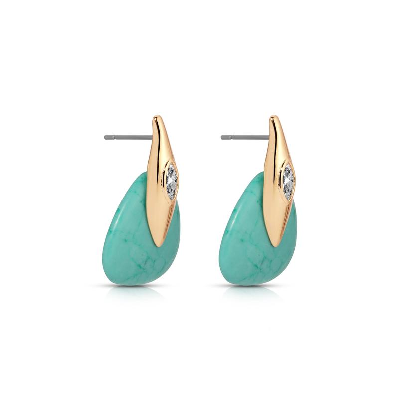 Ettika Turquoise Solstice Earrings - Brass 18k Gold Plated Reconstituted Turquoise & Cubic Zirconia Post Closure 1" x 0.6"
